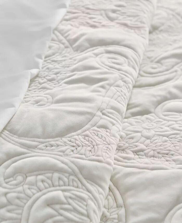 На лицевой стороне изображено множество красиво стеганых узоров пейсли и цветов на мягком бархате.