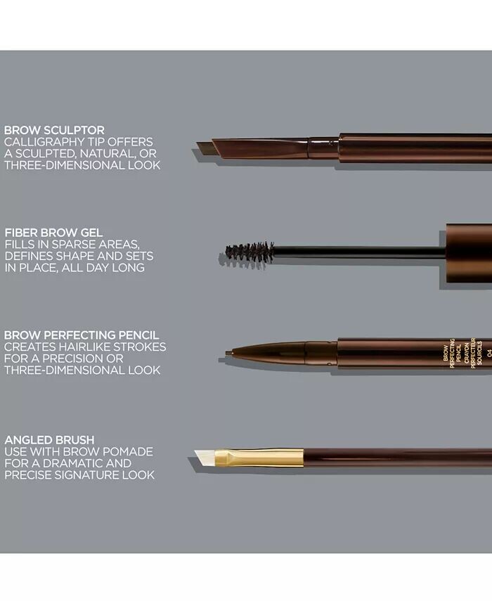 Определяет. Женихи. Формы. Том Форд считает брови одним из важнейших элементов архитектуры лица. Идеально ухоженные и сформированные брови — это самый мощный неинвазивный способ подчеркнуть и подчеркнуть ваши черты лица. Уникальный каллиграфический кончик Brow Sculptor позволяет создавать индивидуальные штрихи, от тонких до широких. Снимите колпачок с противоположного конца, чтобы открыть щетку для ухода; поверните крышку против часовой стрелки, чтобы открыть точилку. Идеально ухоженные и сформированные брови – важнейшая черта лица. Они придают четкость и поддерживают симметрию, и, что более важно, улучшают выражение вашей индивидуальной архитектуры лица. - Том Форд.