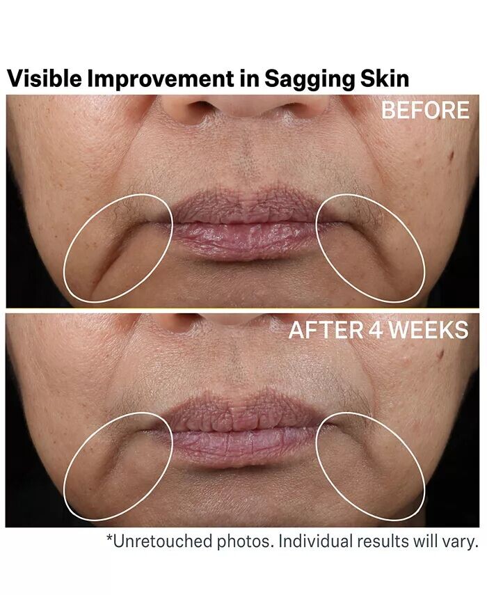 Заметно улучшает провисание кожи вдоль линии подбородка за 4 недели.*