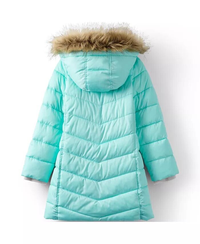 Это пальто для девочек со стеганой отделкой в ​​виде шеврона длиной чуть выше колена обеспечивает максимальную защиту. Мягкая флисовая подкладка сохранит тепло в течение всего сезона. Кроме того, капюшон из искусственного меха не только милый, но и уютный.