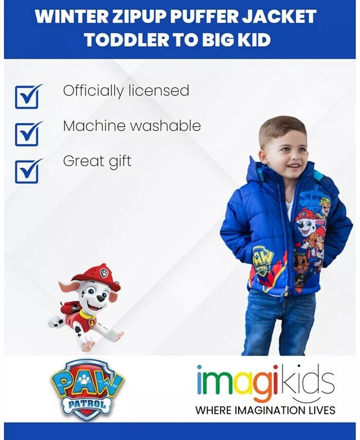 Приготовьтесь к веселым приключениям в этом очаровательном пуховике из Щенячьего патруля! Присоединяйтесь к Маршаллу, Чейзу, Раббл, Скай, Рокки, Зуме, Эвересту и остальным щенкам-спасателям, которые вместе со своим приятелем Райдером помогают решать проблемы в Бухте приключений. Этим могучим щенкам, всегда готовым помочь другу, нужен ваш маленький помощник.