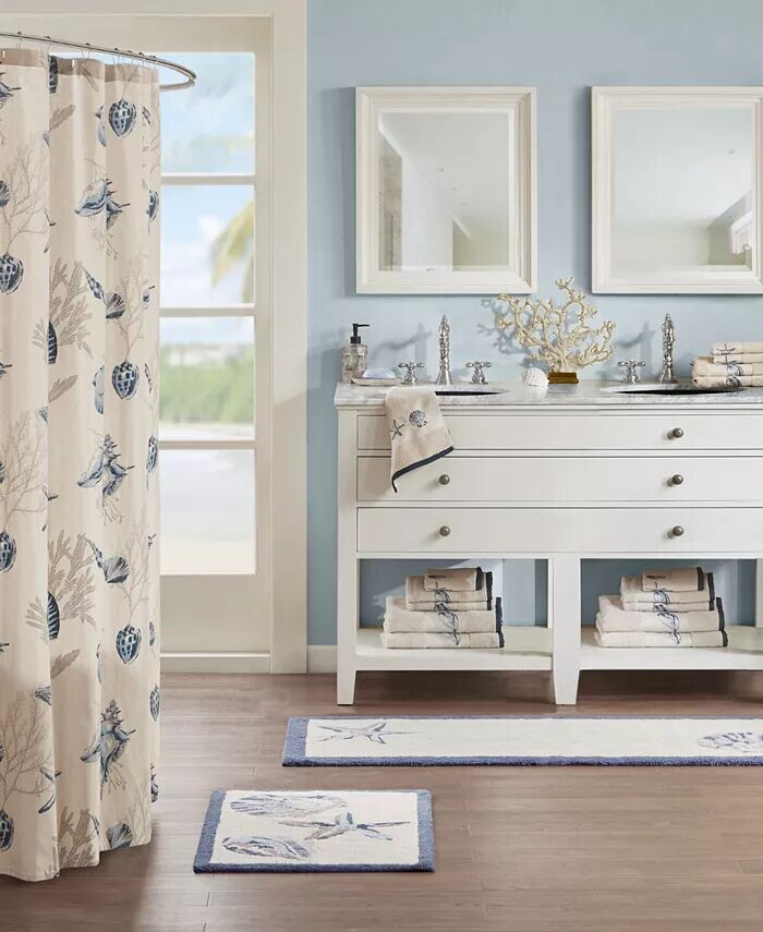 Ковер Madison Park Bayside с хлопковым ворсом придаст интерьеру вашей ванной комнаты идеальный прибрежный оттенок. Этот тафтинговый ковер, изготовленный из 100% хлопка, украшен забавным узором в виде ракушек и морского побережья в насыщенных синих и серо-коричневых тонах, создающих теплый и уютный вид. Техника разрезанного и петлевого ворса создает ощущение мягкой текстуры и обеспечивает максимальный комфорт. Этот ковер с хлопковым ворсом можно стирать в машине, что упрощает уход. Он станет идеальным акцентом для вашего пляжного отдыха. Дополните коллекцию занавеской для душа и полотенцами, которые доступны и продаются отдельно.