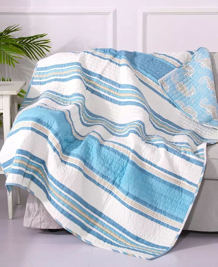 Двусторонний стеганый плед Maui Stripe, 50 x 60 дюймов Levtex, синий