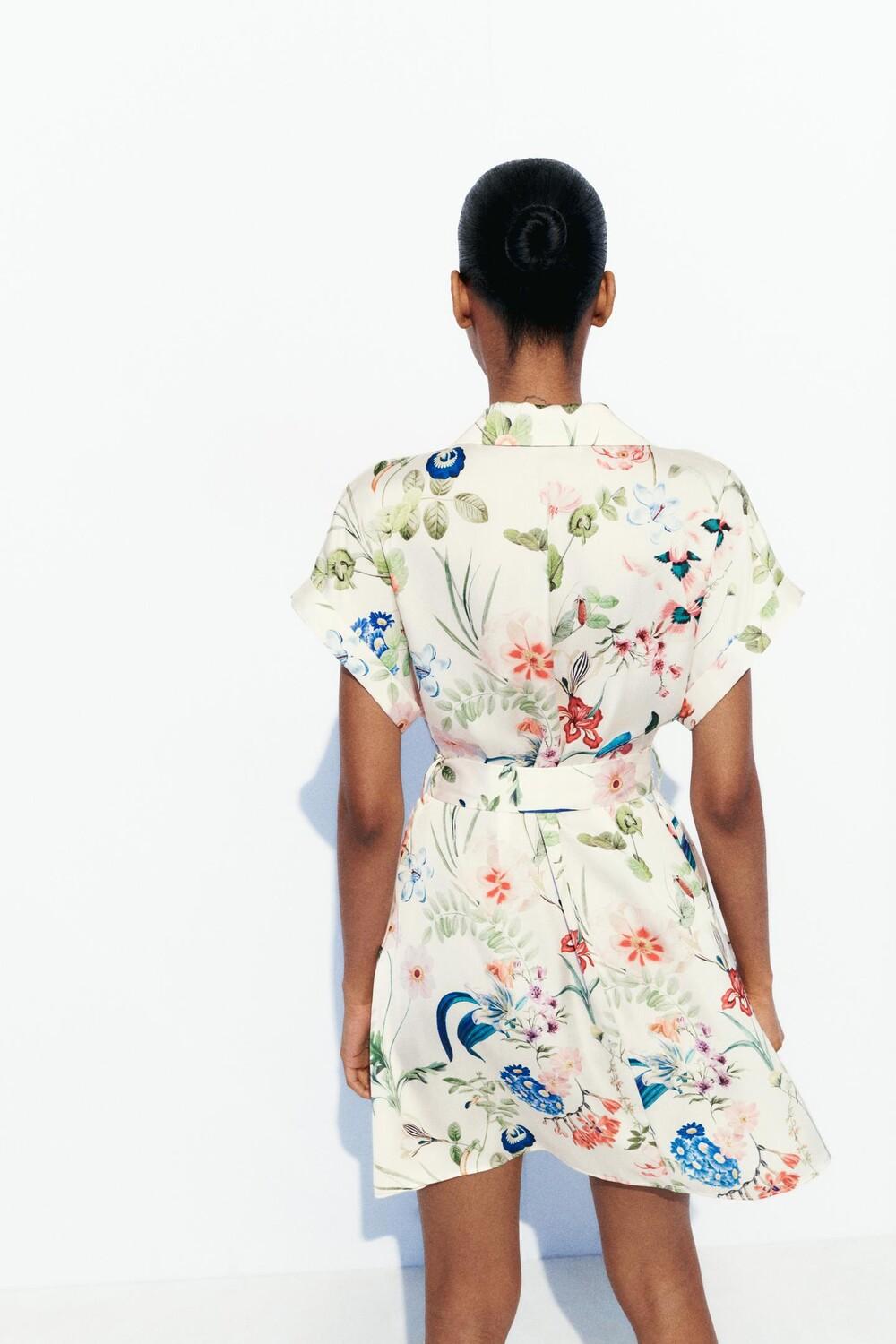 Платье с воротником и короткими рукавами с отворотами. Карманы спереди. Пояс из ткани в тон. Застежка на пуговицы.