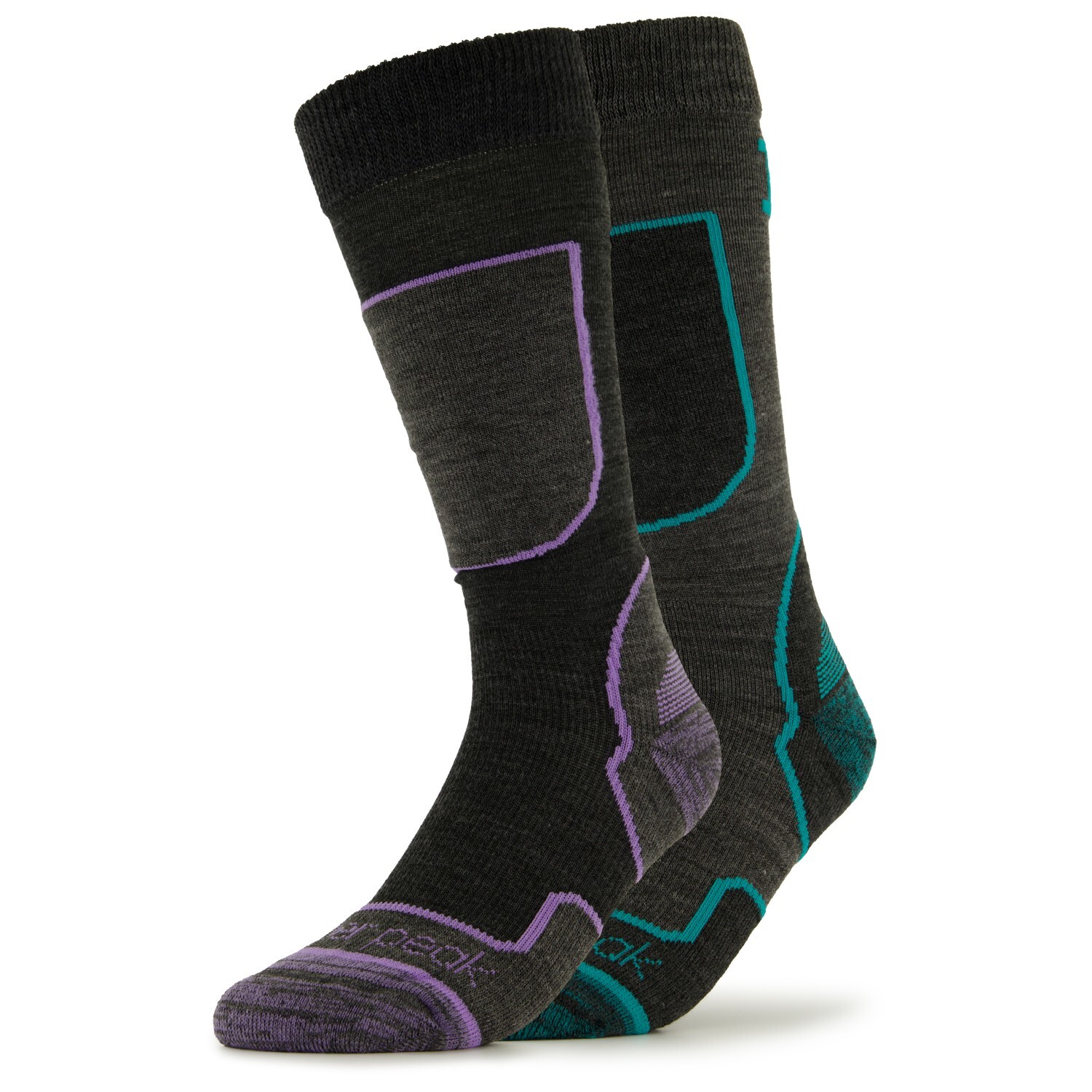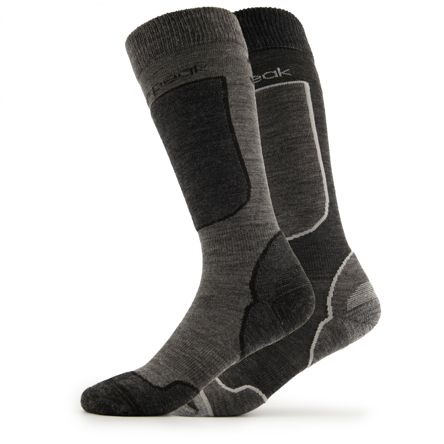 Бренд: Heber Peak Цвет: Black/Grey, Light Grey/Black КедрХе. Комплект лыжных носков (2 шт.) от Heber Peak согреет ваши ноги во время катания на лыжах и сноуборде. Сочетание прочных и быстросохнущих синтетических волокон и согревающей шерсти обеспечивает непревзойденный комфорт. Это еще больше усиливается за счет легкой набивки в области пятки и носка. Так что ничто не помешает долгим дням на склонах! В комплект поставки входят 2 пары носков.