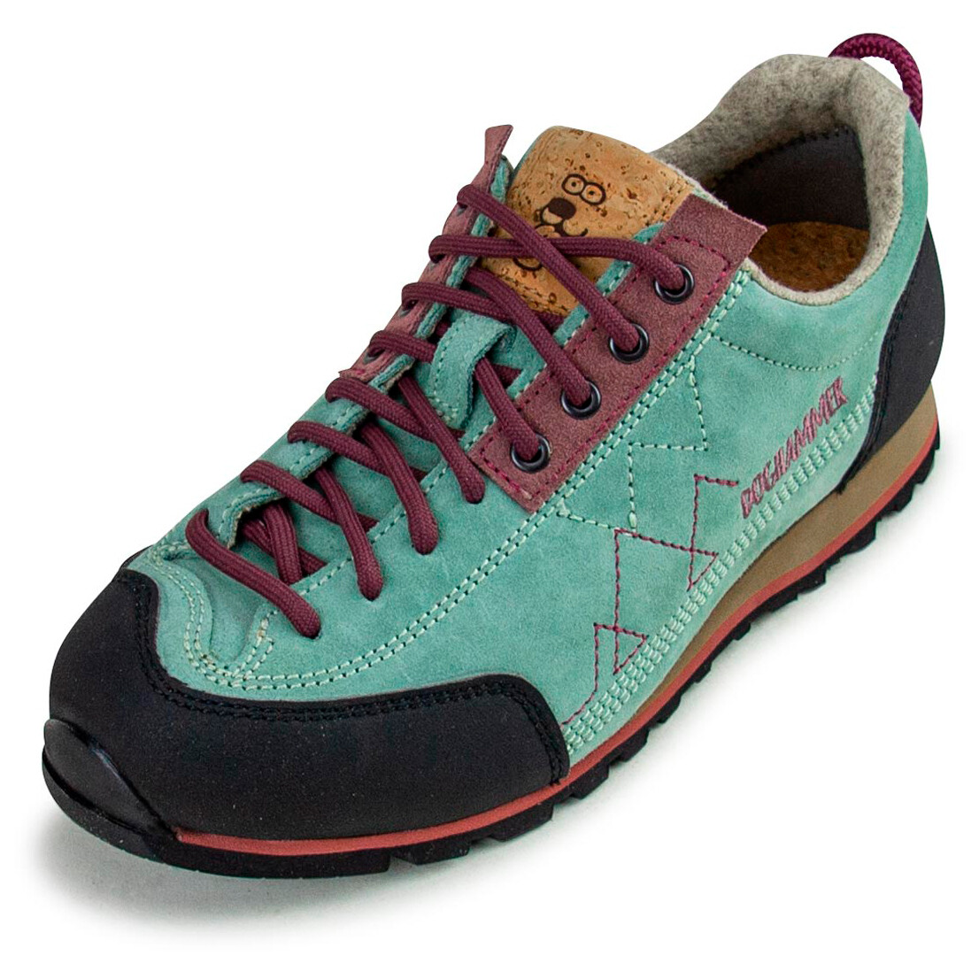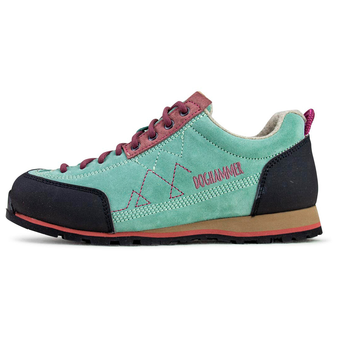 Бренд: Doghammer Цвет: Mint Женские туфли Ginja Rock Wool Approach средней высоты отлично подходят как в походах, так и при восхождении на стену для скалолазания. Благодаря влагорегулирующей внутренней подкладке из шерсти обеспечивается хороший климат для ног. Подошва из ЭВА в сочетании со стелькой из переработанной пробки обеспечивает необходимый комфорт. Таким образом, вы подойдете к стене отдохнувшим. Благодаря практичным петлям для затягивания Ginja Rock Wool от Doghammer предлагает вам легкий вариант крепления во время лазания.