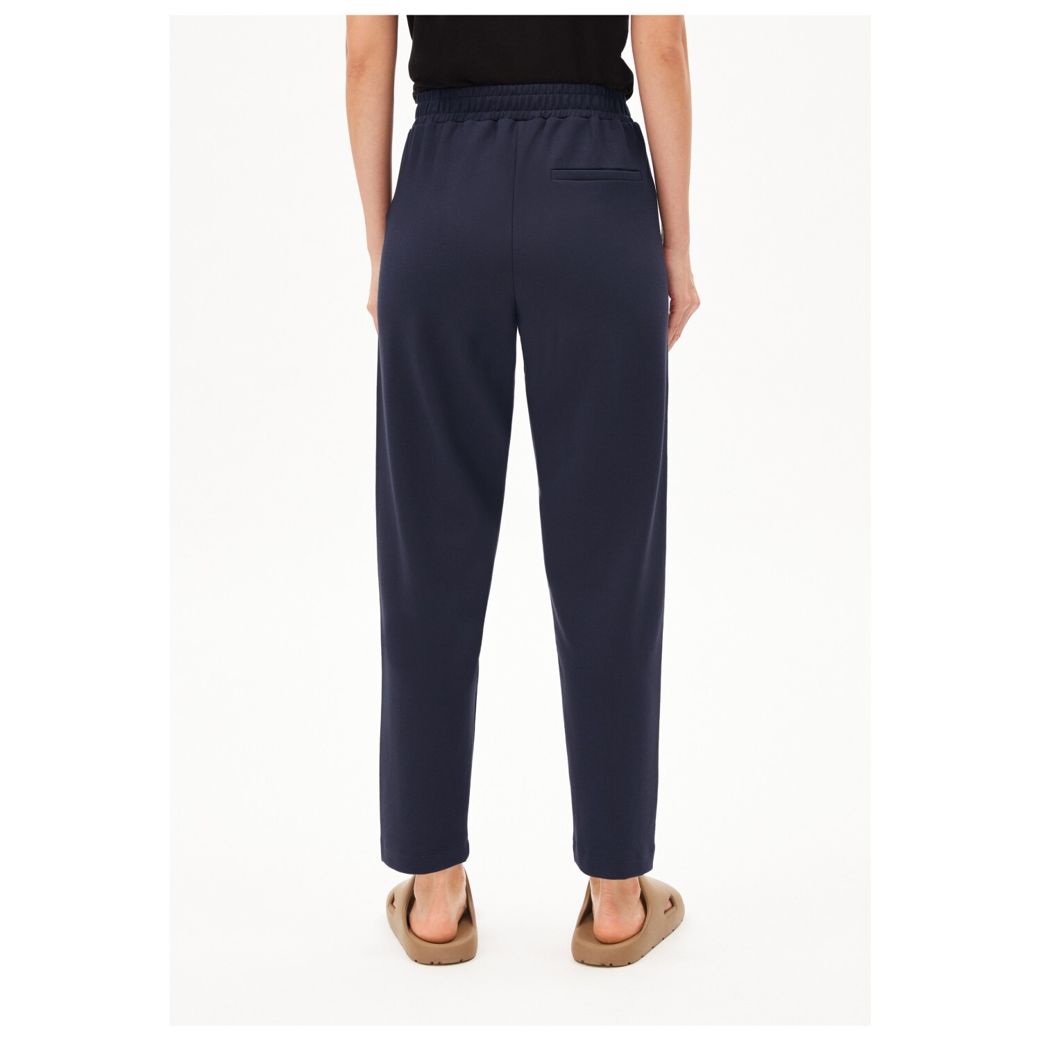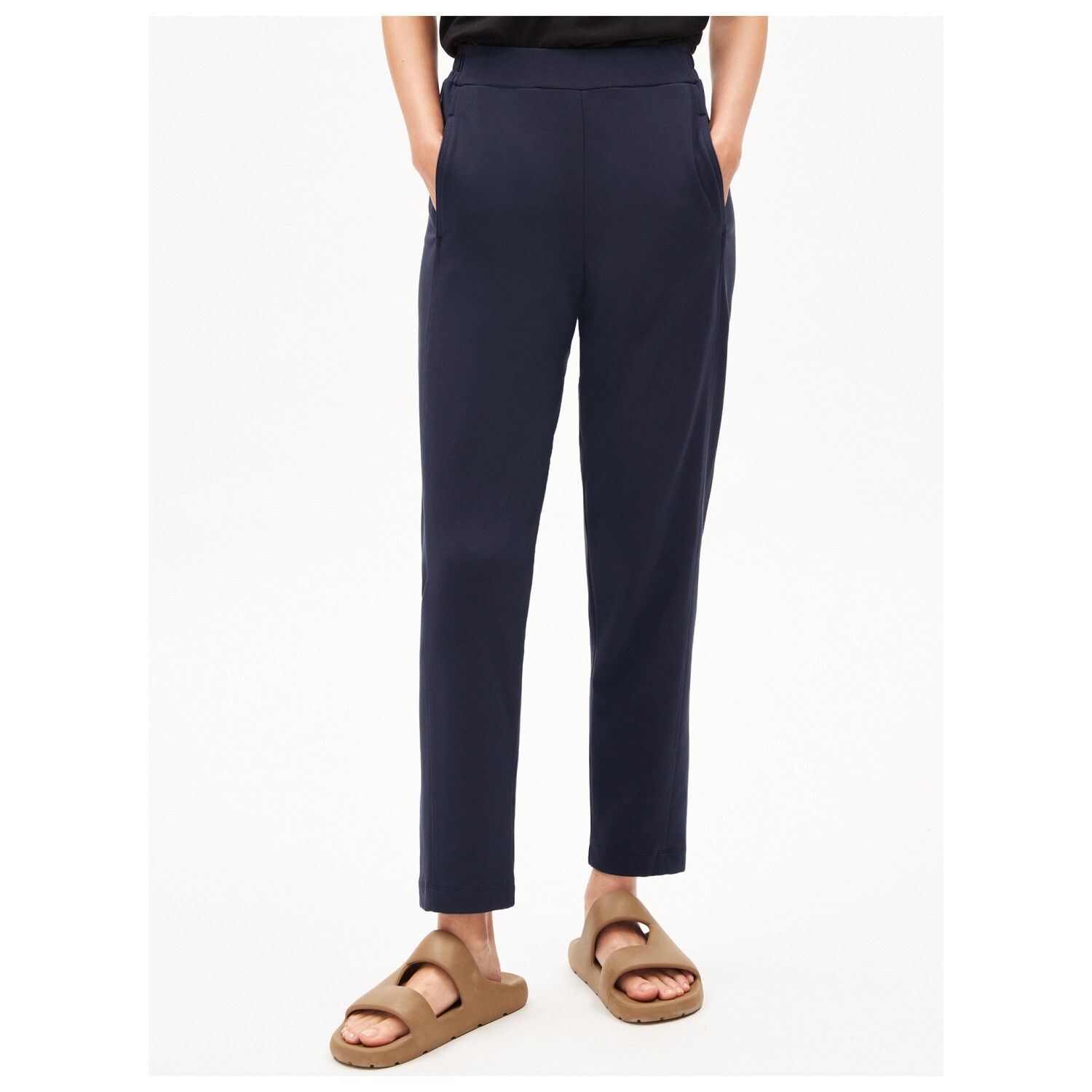 Бренд: Armedangels Цвет: Night Sky Шикарная и особенно удобная женская модель Magdaalena от ARMEDANGELS идеально подходит для дня в офисе, а затем ужина в городе. Красивые брюки изготовлены из очень экологически чистой вискозы Lenzing «ECOVERO», которая является самым экологически чистым вискозным волокном в мире и производится из европейской древесины. Материал приятен для кожи и дышит. Эластичный материал и эластичный пояс обеспечивают дополнительный комфорт и неограниченную свободу движений в любой ситуации и положении. Чего еще может желать женщина?