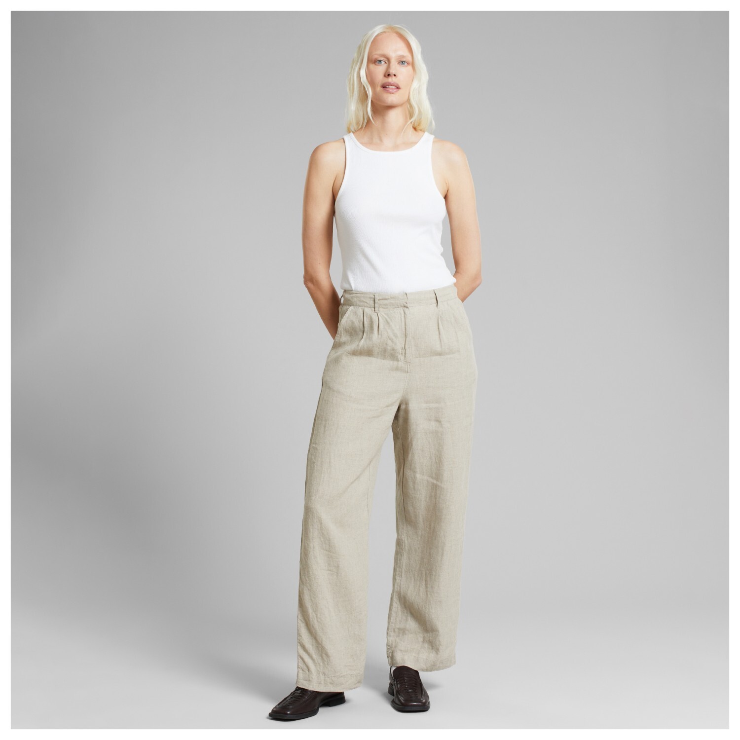 Бренд: Dedicated Цвет: Phantom Black Женские брюки Vickleby Linen от DEDICATED подойдут как для отдыха, так и для повседневной жизни. Их современный и классический вид можно комбинировать разными способами. Благодаря шлевкам брюки можно носить с ремнем. Два боковых кармана дополняют внешний вид и позволяют быстро хранить важные мелкие предметы. Благодаря составу материала брюки дышат и чрезвычайно удобны в ношении.