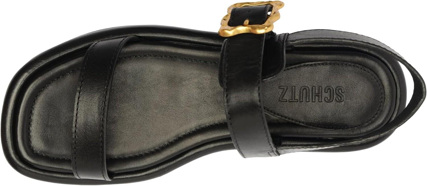 Босоножки Schutz Wavy Flatform настолько удобны, что вам захочется танцевать всю ночь напролет!. Эти сандалии с открытым квадратным носком имеют фирменную отделку на стельке, регулируемый ремешок на щиколотке с пряжкой и кожаный верх.