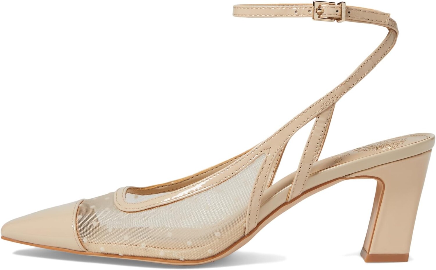 Подчеркните свой ансамбль, добавив нотку винтажной элегантности в туфли-лодочки Vince Camuto Somlee. Эти туфли-лодочки с открытой пяткой оснащены регулируемым ремешком на щиколотке, органично сочетая очарование старого мира с современным стилем. Дизайн может похвастаться модным квадратным носком из мягкой лакированной кожи, а верх дополнен уникальным сочетанием кожаных ремешков и сетчатых панелей, украшенных деталями в виде точек. Прочный блочный каблук средней высоты обеспечивает комфорт для ношения в течение всего дня. Подкладка из искусственной кожи с мягкой стелькой. Прочная резиновая подошва. Импортные. Измерения продукта проводились с использованием размера 7, ширины M. Обратите внимание, что измерения могут отличаться в зависимости от размера. Размеры: Высота каблука: 2 3⁄5 дюйма Вес: 6,6 унции