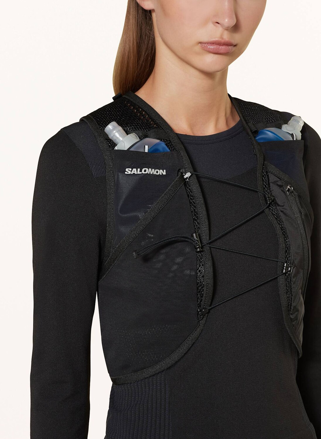 Особенности Изготовлен из функционального материала Дышащий и влагоотводящий С мягкой 3D-сеткой Airmesh Технология SensiFit для оптимальной посадки и свободы движений Эластичность Узкий крой Эластичные застежки со стопорами Вырезы рукавов с эластичной окантовкой Сетчатые карманы для бутылок на груди высота Сетчатые карманы для рук спереди Сетчатый карман на молнии спереди В комплект входят две мягкие бутылки диаметром 28 мм (по 500 мл каждая) Сзади карман на молнии с отделением для питьевого резервуара Крепление и выпуск для шланга питьевого резервуара Совместимость с Специальная система колчанов для крепления шестов Светоотражающие этикетки - Подробности