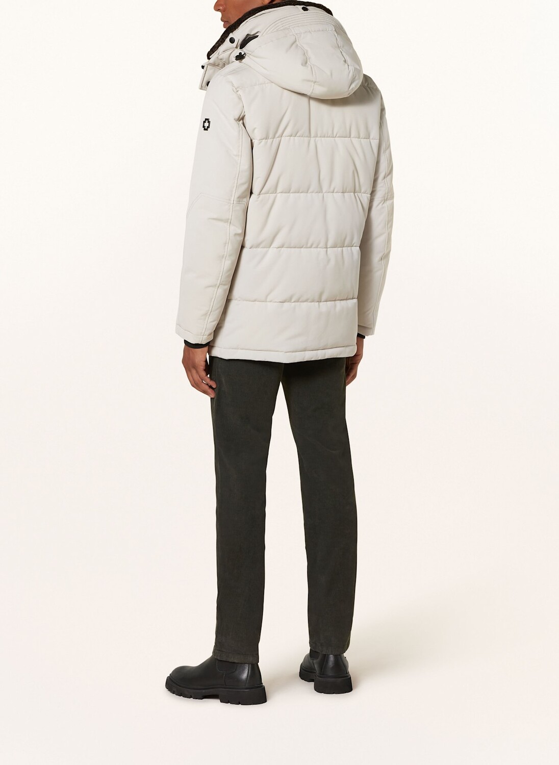 Особенности Прямого кроя Высокий воротник с капюшоном Съемный капюшон Съемный воротник из искусственного меха Застегивается на молнию и планку с пуговицами Прорезные карманы на кнопке Карманы с клапанами на кнопке Внутренние эластичные манжеты на концах рукавов Стеганая подкладка Синтетический наполнитель Ветрозащита Дышащий Водоотталкивающий Стеганый дизайн Этикетка-эмблема на рукаве Изготовлен из переработанного полиэстера.