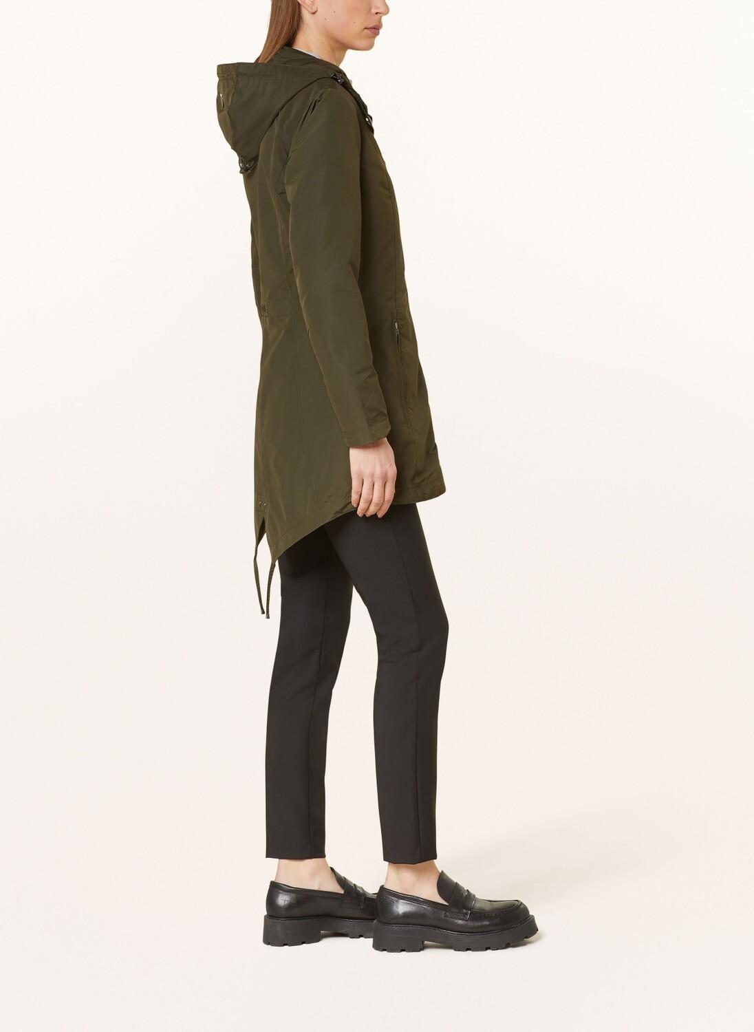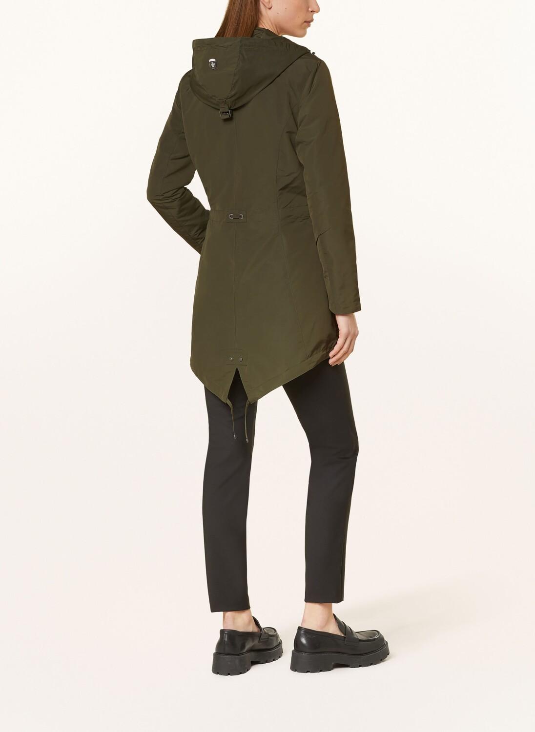 Особенности Индивидуальный крой Воротник с капюшоном Капюшон на кулиске и фиксаторе шнура Застегивается на потайную двустороннюю молнию Потайная планка на кнопках Боковые карманы на молнии Кулиска с фиксатором шнура по низу Низ "рыбий хвост" Внутренние карманы Гладкая внутренняя подкладка Синтетика наполнитель Ветроотталкивающий Дышащий Табличка с этикеткой на рукаве и капюшоне
