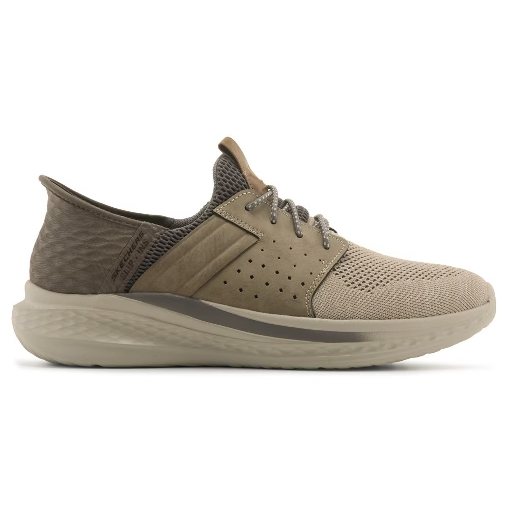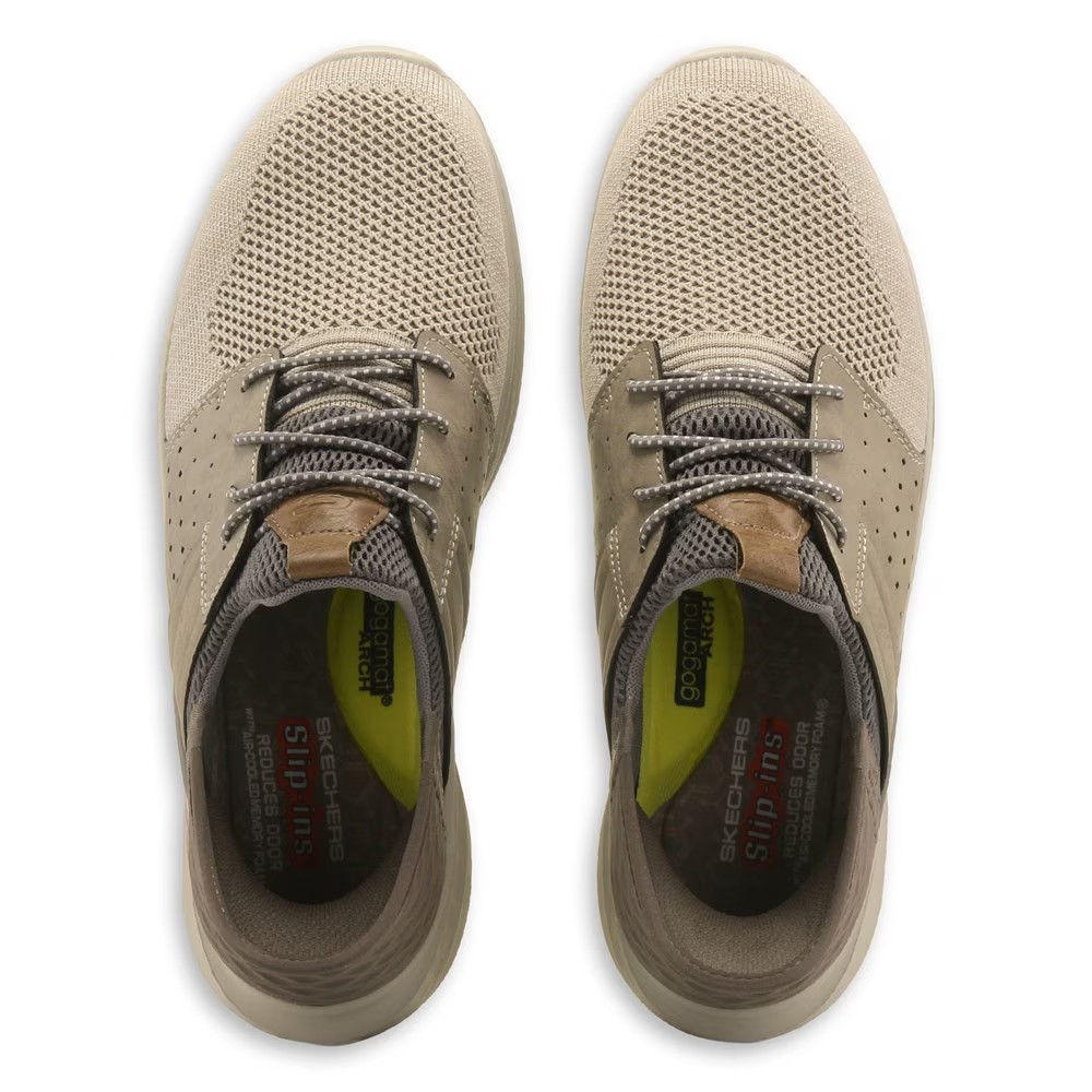 Фиксированные эластичные шнурки Ощутите удобство и комфорт при ходьбе с мужскими кроссовками Skechers Slip-ins Ocon Slip On. Верх из сетки и синтетического материала в стиле кроссовок с закругленным носком Формованная пяточная панель Hands Free Slip-ins для легкой посадки Логотип Skechers Свободная посадка для удобной посадки на носке и передней части стопы Стелька с добавлением угля помогает нейтрализовать потенциальный запах Амортизация Skechers Goga Mat Arch для дополнительной поддержки Удобная амортизирующая стелька Skechers Air-Cooled Memory Foam Эксклюзивная подушка для пятки надежно удерживает стопу Изготовлены из 100% веганских материалов Гибкая подошва с тягой 210811