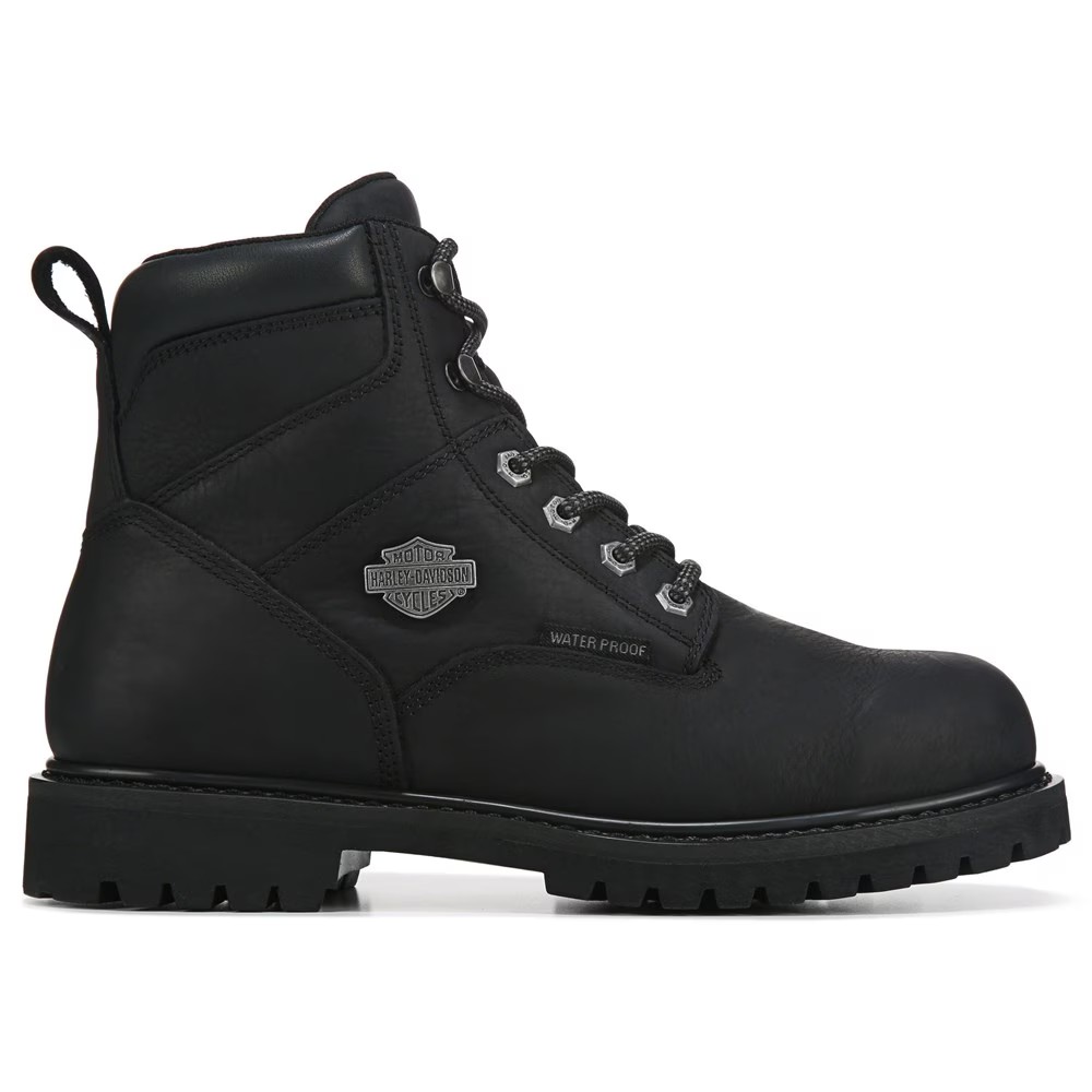 Защита от дороги до рабочего места в мужских ботинках Harley Davidson Gavern Composite Toe Waterproof Lace Up. Кожаный верх в стиле водонепроницаемого ботинка с композитным носком Шнуровка для надежной посадки Мягкий воротник и язычок для дополнительного комфорта Высота голенища 5 и 1/2 дюйма Защита от поражения электрическим током по стандарту ASTM F2413-05 1/75 Композитный носок по стандарту ASTM F2413-18 MI C Водонепроницаемая конструкция сохранит тепло и сухость Фурнитура с логотипом и шестигранными люверсами Конструкция ранта для долговечности Дышащая сетчатая подкладка с удобной стелькой Прочная резиновая подошва устойчива к воздействию масел