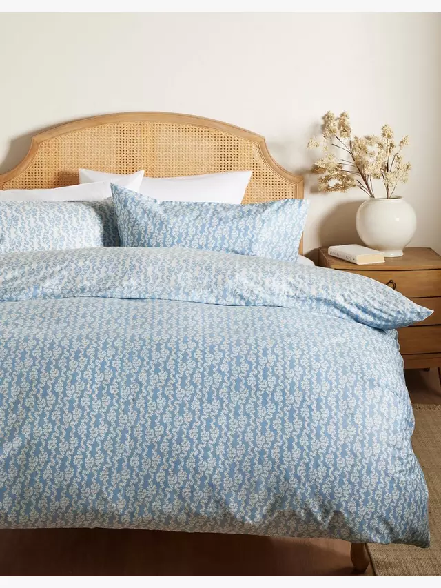 Это красивое постельное белье имеет мягкие и извилистые органические формы на пастельно-голубом фоне и обратные цвета на изнанке. Он изготовлен из хлопкового сатина плотностью 300 нитей, который от природы мягкий и дышащий, чтобы помочь вам сохранять прохладу и комфорт во время сна. Односпальный комплект поставляется с одной стандартной наволочкой, а двуспальные, королевские и суперкоролевские комплекты поставляются с двумя стандартными наволочками.