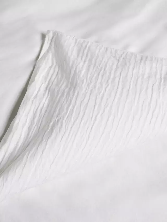 Почему бы не сделать все просто с этим красивым постельным бельем из плотного хлопка сирсакер? Добавьте подушки и пледы нейтральных тонов и разных фактур или добавьте ярких цветов. Обратная сторона простая.
