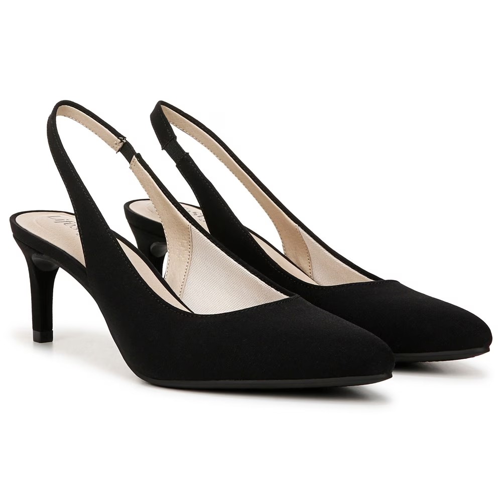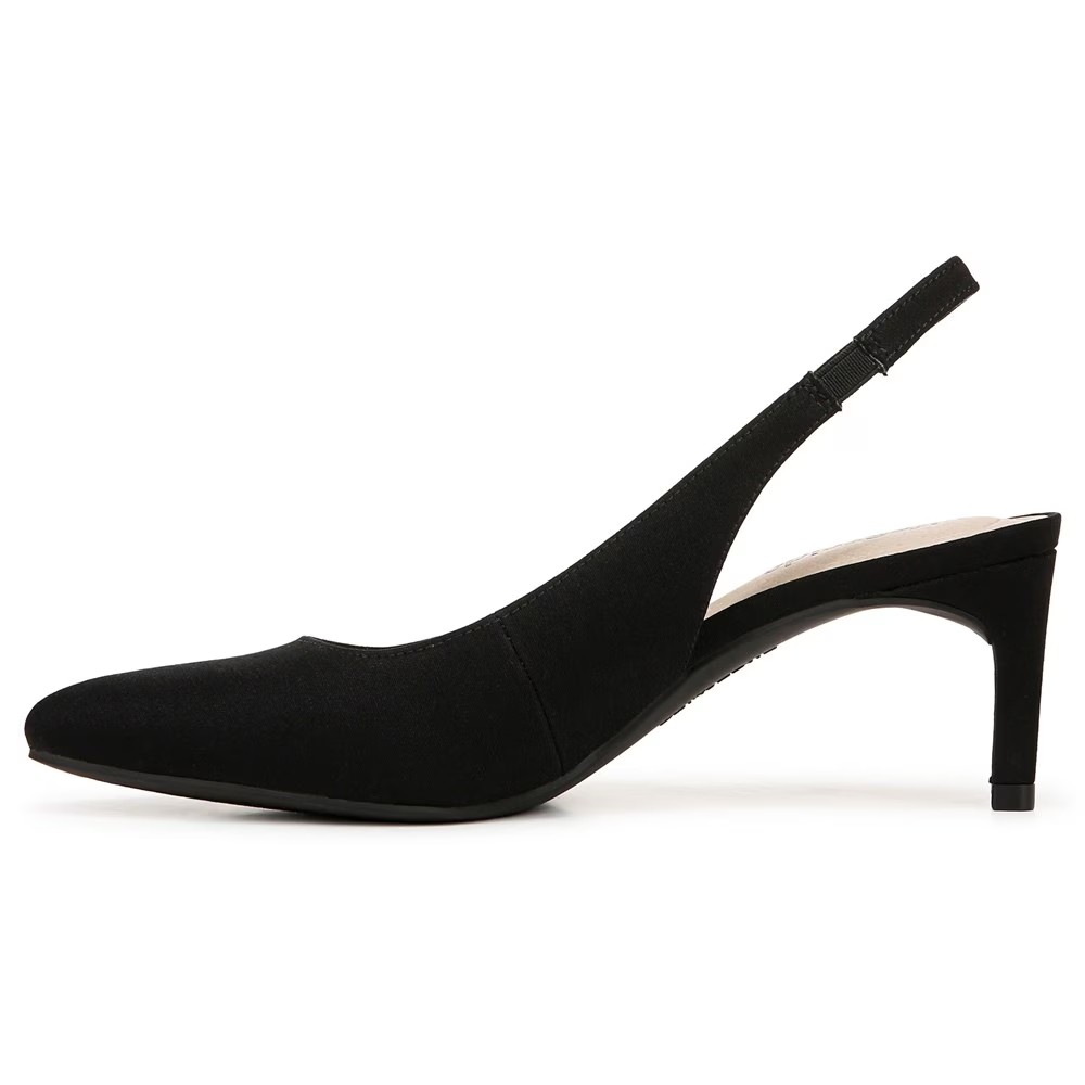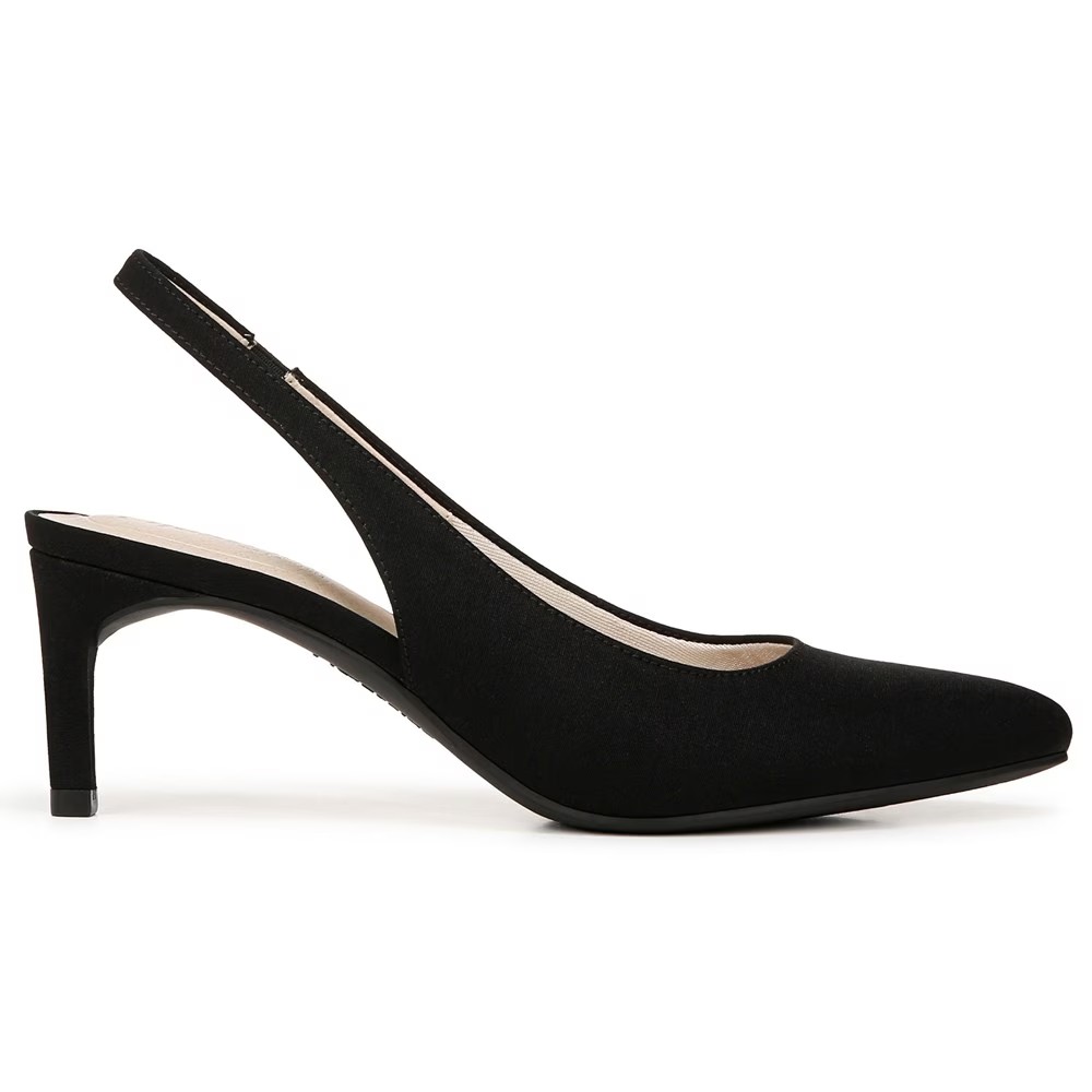 Классические туфли с открытой пяткой в современном исполнении. Носите эти удобные женские туфли на каблуке и уверенно встречайте свой день. Верх из искусственной кожи или микрофибры, мягкий заостренный носок и ремешок с открытой пяткой со встроенной растяжкой для идеальной посадки. Подкладка изготовлена из частично переработанных материалов. Пакет Soft System Comfort обеспечивает поддержку, гибкость и амортизацию в течение всего дня Подошва с цепким креплением для дополнительной устойчивости Каблук Just Right Height 2 3/8 дюйма