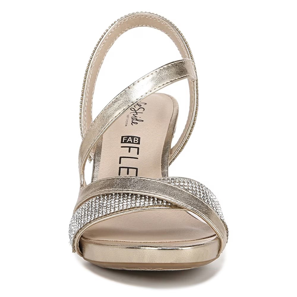 Появитесь в этих сверкающих, с ремешками, удивительно удобных сандалиях для женщин. Металлические ремешки из искусственной кожи с открытым миндалевидным носком, ремешок на пятке со встроенным эластичным элементом, акценты из стразов и гибкая платформа. Пакет Soft System Comfort обеспечивает поддержку, гибкость и амортизацию в течение всего дня Технология Fab Flex с супергибким, ультрамягким каблуком-платформой для максимального комфорта Подошва Traction для дополнительной устойчивости Каблук Just Right Height 3 дюйма