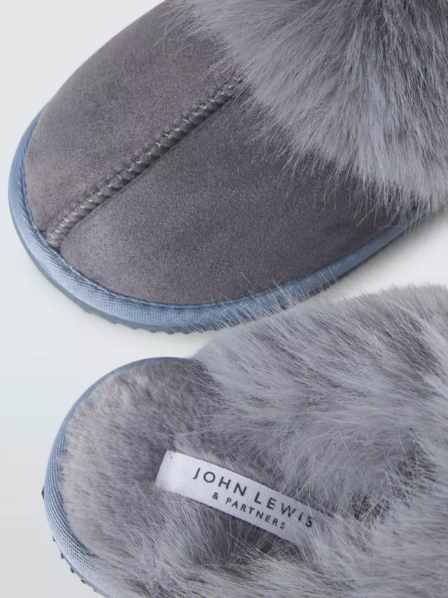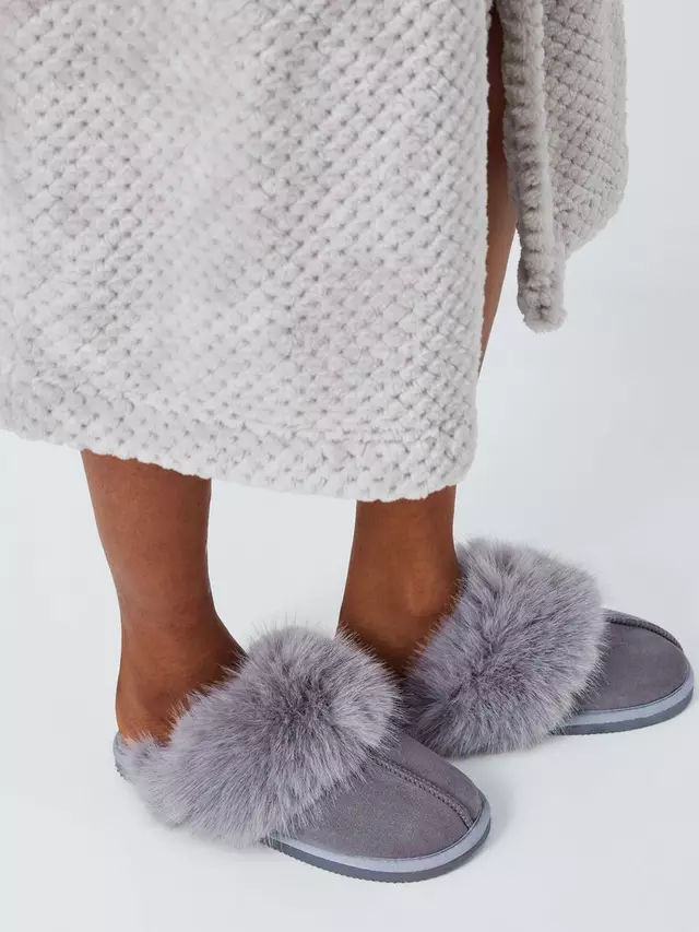 Тапочки John Lewis John Lewi Microsuede Fluffy Faux Fur Mule, серый
