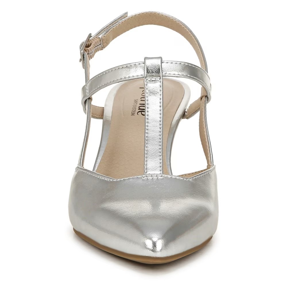 Современная интерпретация классического Т-образного ремешка, эти красивые туфли-лодочки с острым носком выделяются посадкой и стилем. Верх из искусственной кожи с мягким заостренным носком, современный дизайн Т-образного ремешка, ремешок с пяткой и регулируемой пряжкой. Подкладка изготовлена из частично переработанных материалов. Пакет Soft System Comfort обеспечивает поддержку, гибкость и амортизацию в течение всего дня Подошва с цепкостью для дополнительной устойчивости Каблук Just Right Height 2 3/8 дюйма