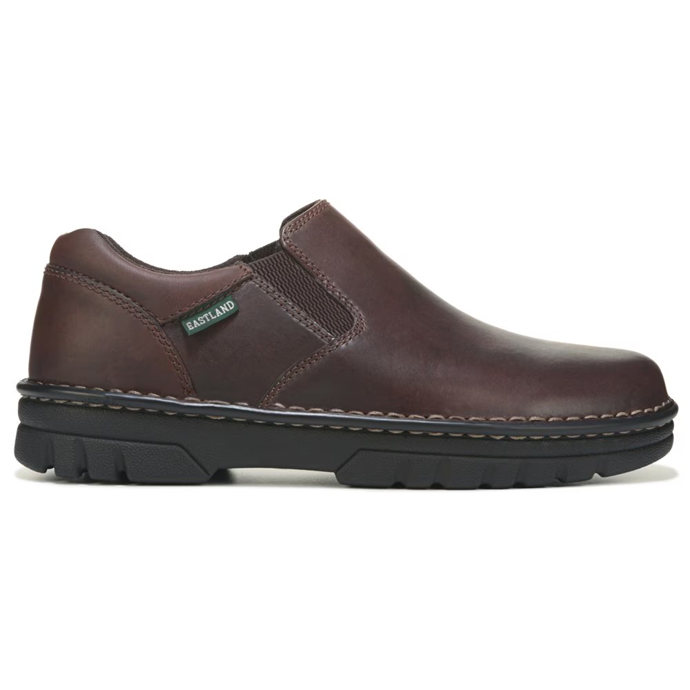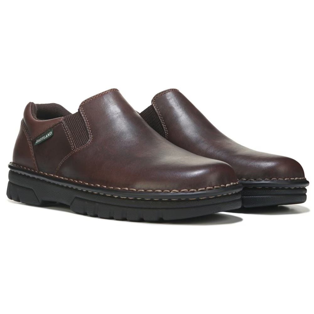 Прочные туфли Eastland Newport Slip On обеспечат вам комфорт и стильное движение. Мягкий кожаный верх в непринужденном стиле с закругленным носком. Контурные детали с двойной строчкой добавляют классическую привлекательность. Мягкий воротник и двойные эластичные боковые вставки обеспечивают легкую посадку. Подкладка из ткани и съемная амортизирующая стелька из пеноматериала, гибкая прошитая резиновая подошва. Прочная резиновая подошва с цепким протектором. Каблук 1 1/4 дюйма. Доступны в средней и широкой полноте.