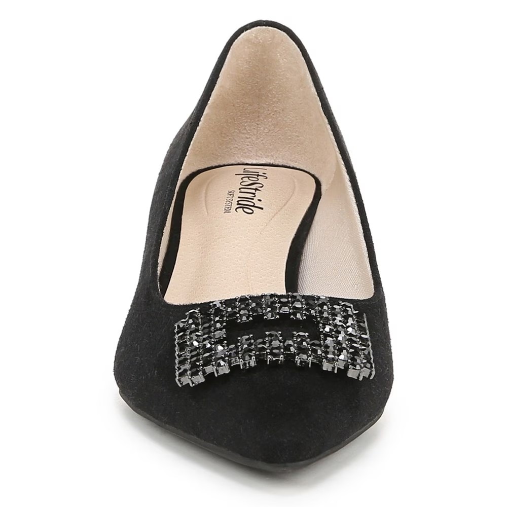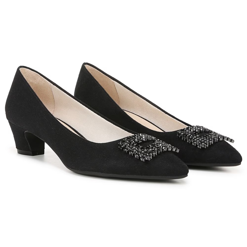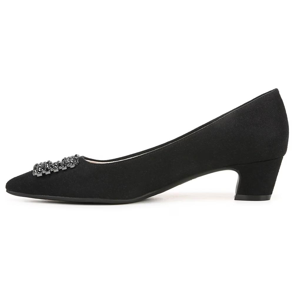 Настоящая элегантность. Пусть этот острый каблук с великолепным блестящим орнаментом приведет вас туда, куда вы хотите. Верх из микрофибры с острым носком, без застежек, блестящий орнамент и конический блочный каблук. Подкладка изготовлена из частично переработанных материалов. Пакет Soft System Comfort обеспечивает поддержку, гибкость и амортизацию в течение всего дня Подошва с платформой Traction обеспечивает дополнительную устойчивость Толстовка Just Right Height 1 5/8 дюйма