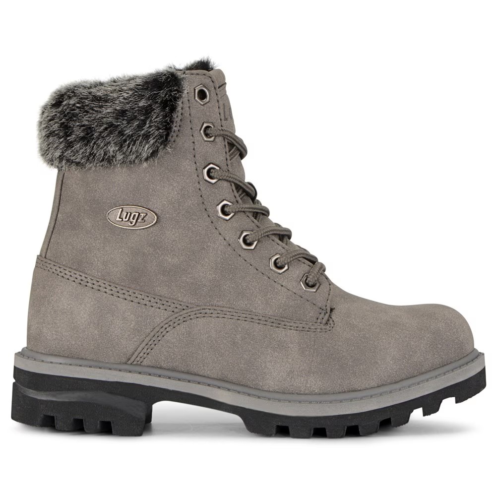 Держите тепло под воротником в ботинках Empire High Fur Lace Up Boot от Lugz. Верх из искусственной кожи в стиле рабочих ботинок на шнуровке с круглым носком Шнуровка спереди с металлической фурнитурой Мягкий язычок и воротник Широкие детали и логотип Водонепроницаемость Высота голенища 6 дюймов Подкладка и воротник из искусственного меха, амортизация Стелька Flexastride из формованной пены с эффектом памяти Нескользящая резиновая подошва с выступами