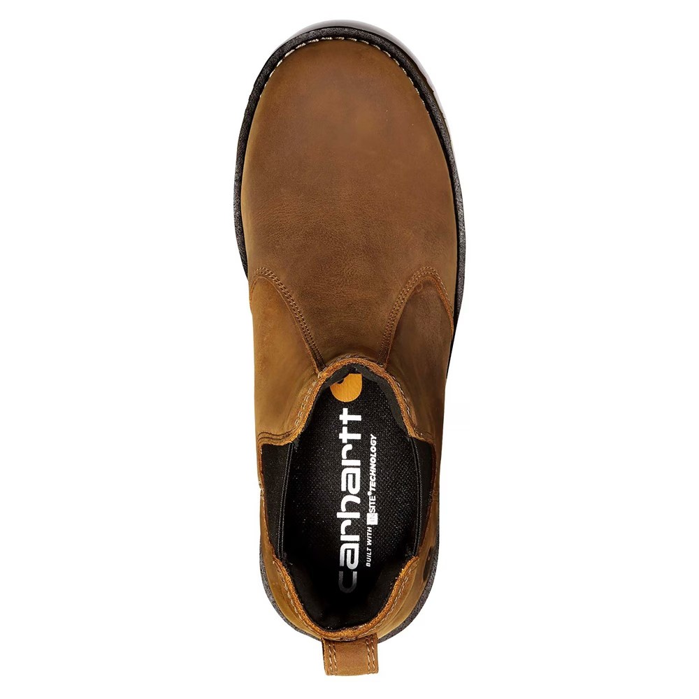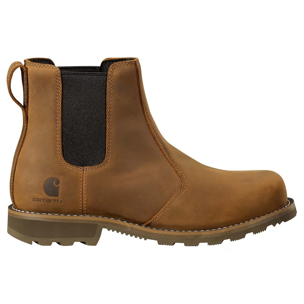 Оставайтесь сухими и в комфорте весь день в женских водонепроницаемых ботинках Carhartt Frontier Chelsea. Кожаный верх в стиле ботинка с круглым мягким носком Надевайте ботинки, натягивая их Покрытие Rain Defender отталкивает воду, сохраняя ноги сухими Подкладка с технологией FastDry отводит пот, обеспечивая комфорт Обеспечивает защиту от электрических токов, соответствует стандартам ASTM F2413-18 EH Двойная плотность противоскользящей резиновой подошвы