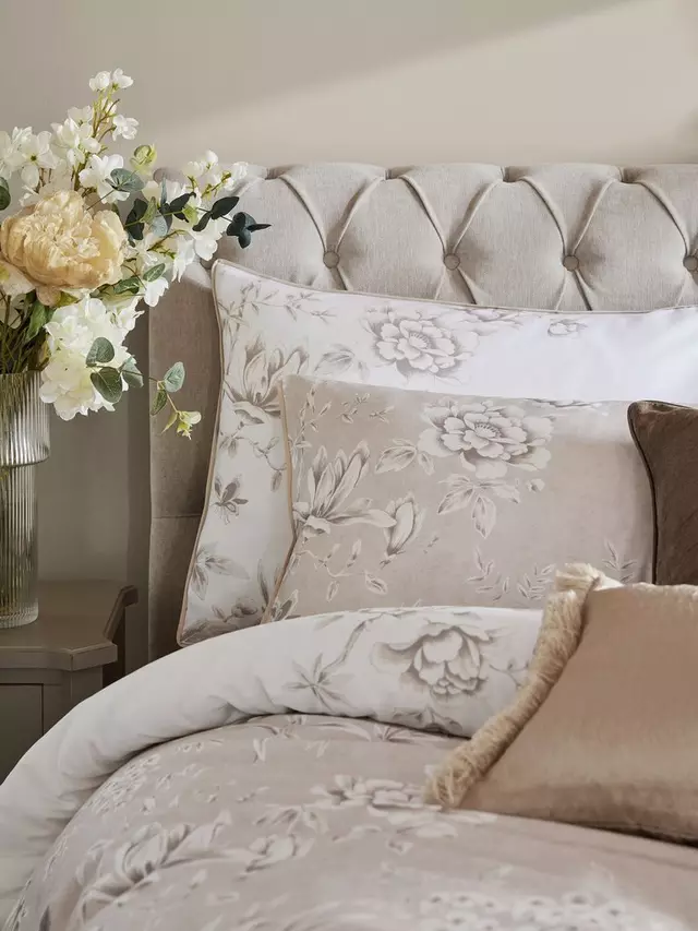 Добавьте нотку элегантности в вашу спальню с помощью великолепного двустороннего постельного белья Rowsham Garden. Красивые цветы глицинии, пиона и магнолии в стиле шинуазри на этом роскошном хлопковом сатиновом постельном белье плотностью 220 нитей в непреходящей палитре теплых натуральных оттенков и белоснежного цвета. В комплект входит 1 стандартная наволочка. Все остальные размеры поставляются с 2 стандартными наволочками. Дополнительные стандартные наволочки можно купить отдельно, парами.