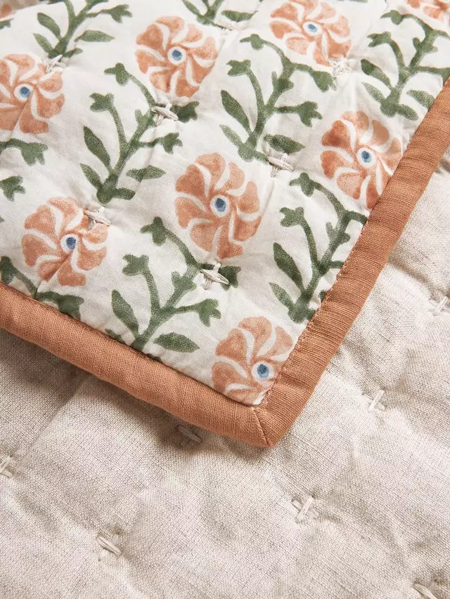 Слегка простеганное вручную покрывало с цветочным рисунком и простой подкладкой из 100% льна. Выбирайте оттенки теплого терракотового или холодного синего в соответствии со стилем вашей спальни. Оба варианта двусторонние. 220 x 220 рекомендуется для двуспальных и двуспальных кроватей. Better Cotton Выбирая наши изделия из хлопка, вы поддерживаете наши инвестиции в миссию Better Cotton по оказанию помощи хлопковым общинам в выживании и процветании, одновременно защищая и восстанавливая окружающую среду. Better Cotton Farmers — это фермеры, которые заботятся об окружающей среде и уважают права и благополучие рабочих. Этот продукт поставляется через систему баланса масс и, следовательно, может не содержать Better Cotton. bettercotton.org/massbalance