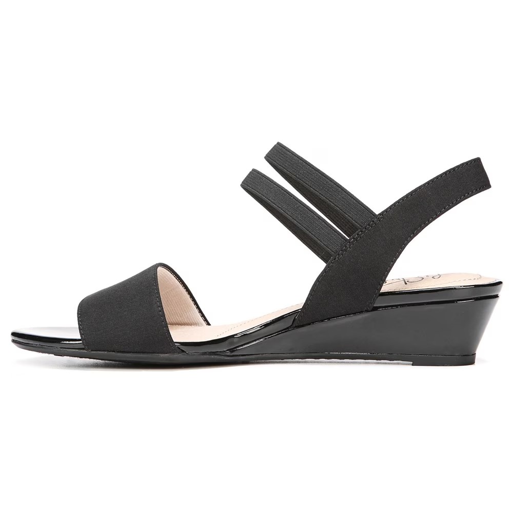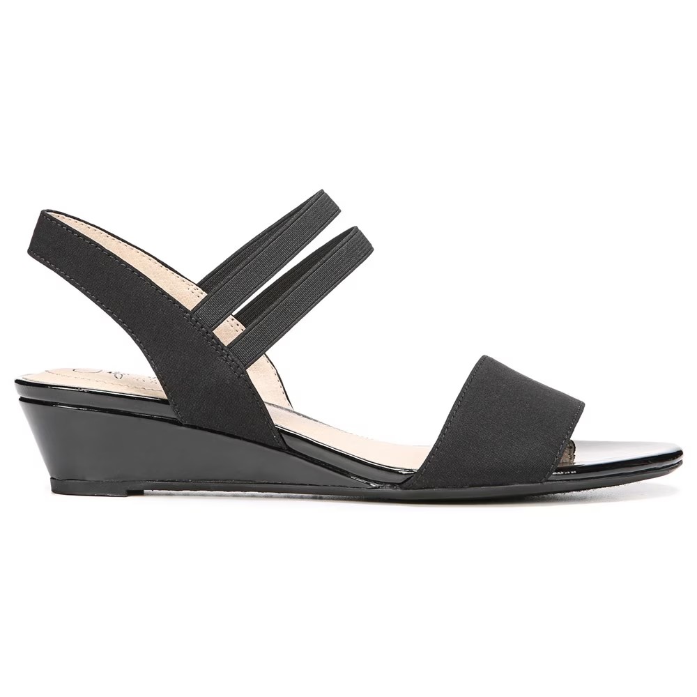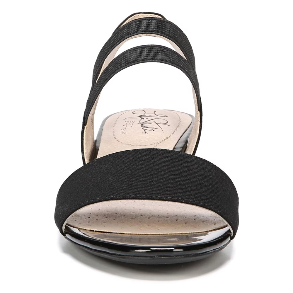 Наслаждайтесь своим внешним видом каждый раз, когда надеваете эти стильные босоножки на танкетке. Верх из ткани с открытым носком, удобная посадка, эластичные ремешки для дополнительной гибкости и лакированные акценты на танкетке и пяточном ремешке. Комплект Soft System Comfort обеспечивает поддержку, гибкость и амортизацию в течение всего дня Подошва с цепкостью обеспечивает дополнительную устойчивость Танцующий каблук Just Right Height 1 и 3/8 дюйма