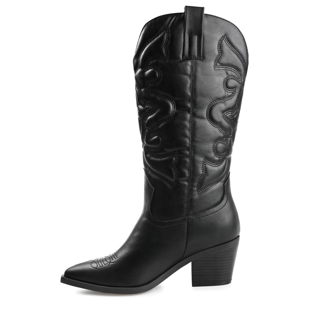 Классические ковбойские сапоги, переосмысленные для современных модниц, женские ковбойские сапоги Chantry Knee High Cowboy Boot из коллекции Journee. Верх из веганской кожи в стиле вестерн с заостренным носком Вход осуществляется с помощью затягивающихся петель Детали прострочки Мягкая подкладка со стелькой Comfort Foam толщиной 4 мм Прочная искусственная подошва с блочным каблуком 3 дюйма Высота сапога 12 дюймов и окружность 12,5 дюйма