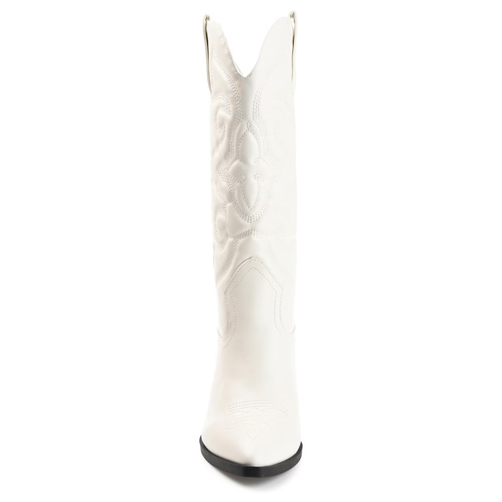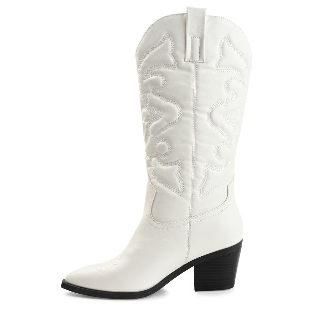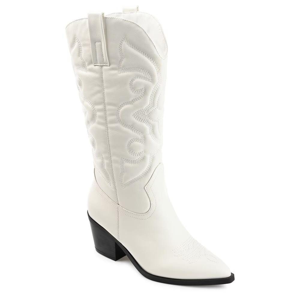 Классические ковбойские сапоги, переосмысленные для современных модниц, женские ковбойские сапоги Chantry Knee High Cowboy Boot из коллекции Journee. Верх из веганской кожи в стиле вестерн с заостренным носком Вход осуществляется с помощью затягивающихся петель Детали прострочки Мягкая подкладка со стелькой Comfort Foam толщиной 4 мм Прочная искусственная подошва с блочным каблуком 3 дюйма Высота сапога 12 дюймов и окружность 12,5 дюйма