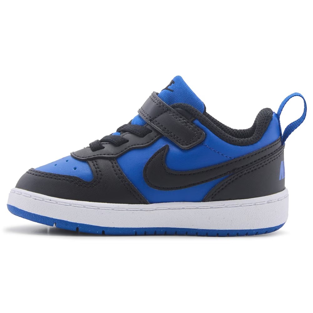 Классический стиль для нового поколения: детские кроссовки Nike Court Borough 2 Low Top. Кожаный верх в стиле кроссовок для повседневной носки с круглым носком Шнуровка с регулируемым ремешком на липучке Детали с логотипом и галочкой Nike с перфорацией на носке Петля для подтягивания на пятке Мягкий воротник и язычок Мягкая подкладка с удобной стелькой Прошитая промежуточная подошва Прочная резиновая подошва с хорошим сцеплением