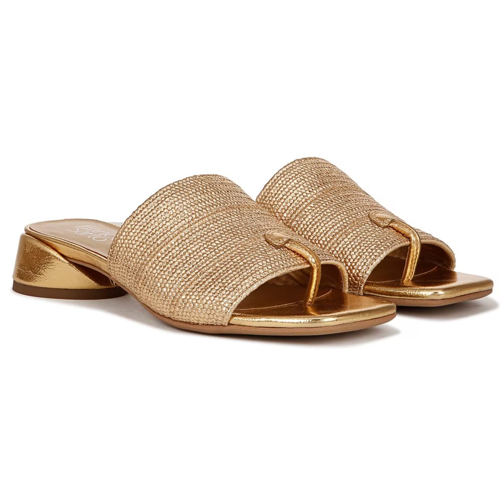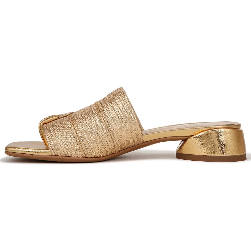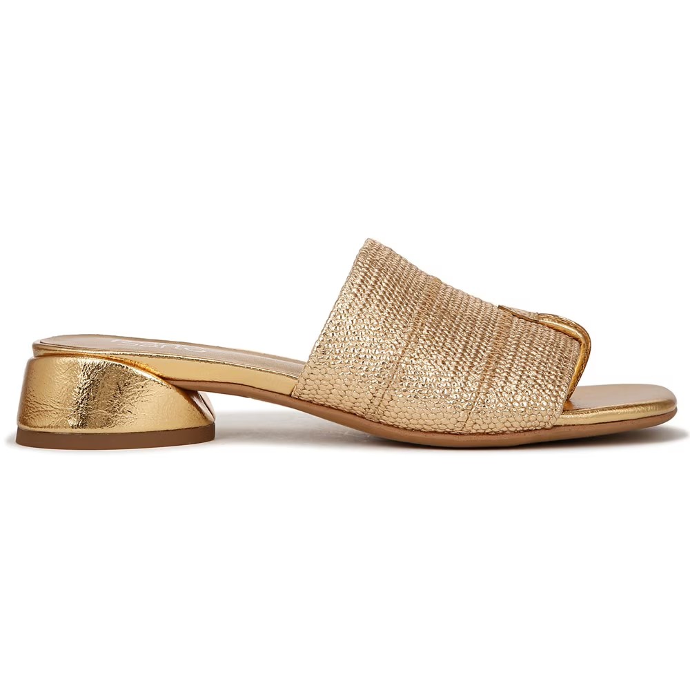 Совершенная форма. Современные художественные линии этих шлепанцев облагораживают любой образ. Верх из искусственной кожи, рафии или натуральной кожи, закупаемый ответственно у Leather Working Group Экологически чистые подкладки с мягким и устойчивым комфортом Без застежек Открытый квадратный носок со скрытым креплением для ремешка Дополнительная подкладка для дополнительного комфорта Скульптурный овальный каблук высотой 1,18 дюйма