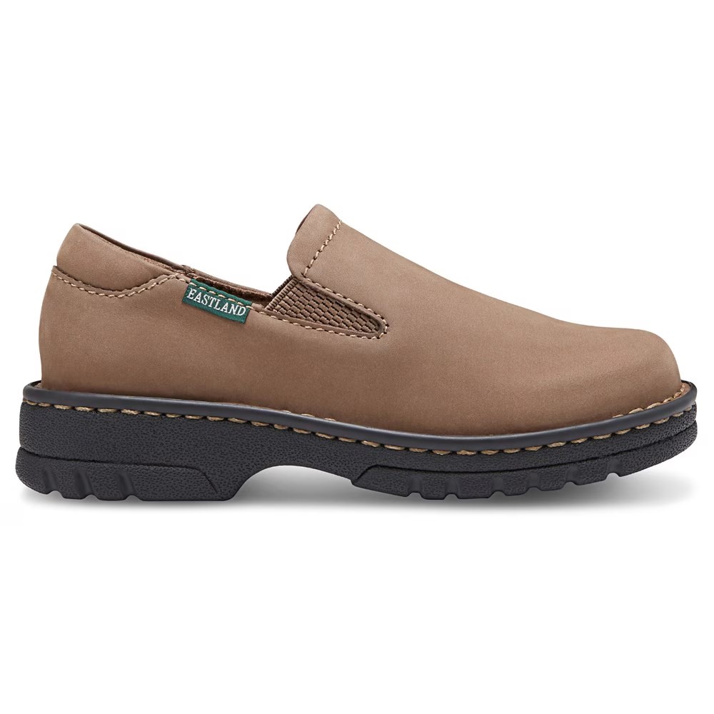 Eastland обеспечит комфортные выходные с лоферами Newport от Eastland. Мягкий кожаный верх в стиле повседневных лоферов без застежек с круглым носком Двойные эластичные боковые вставки, мягкий воротник и язычок обеспечивают удобную посадку без застежек Текстильная подкладка и амортизирующая съемная стелька, гибкая прошитая резиновая подошва толщиной 3/4 дюйма Квадратный каблук 1 1/4 дюйма Доступны в средней и широкой полноте