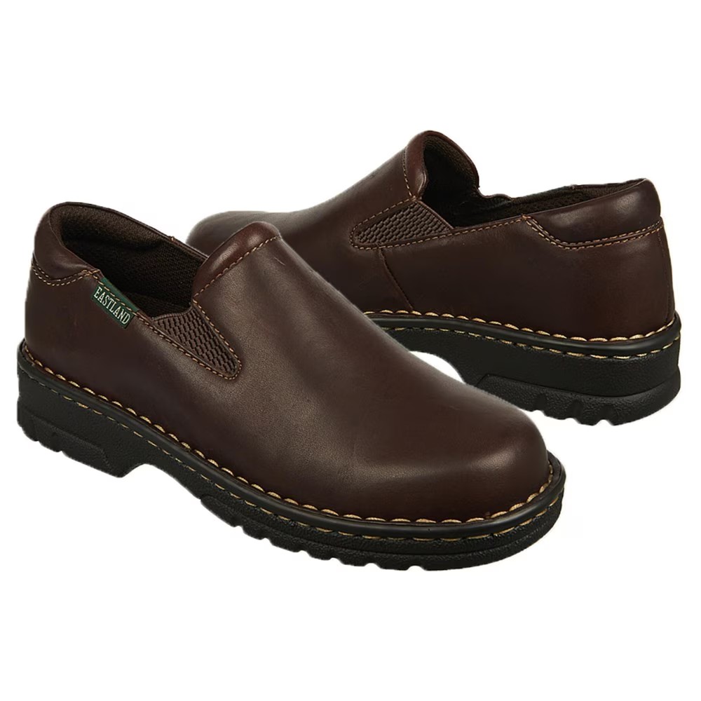 Eastland обеспечит комфортные выходные с лоферами Newport от Eastland. Мягкий кожаный верх в стиле повседневных лоферов без застежек с круглым носком Двойные эластичные боковые вставки, мягкий воротник и язычок обеспечивают удобную посадку без застежек Текстильная подкладка и амортизирующая съемная стелька, гибкая прошитая резиновая подошва толщиной 3/4 дюйма Квадратный каблук 1 1/4 дюйма Доступны в средней и широкой полноте