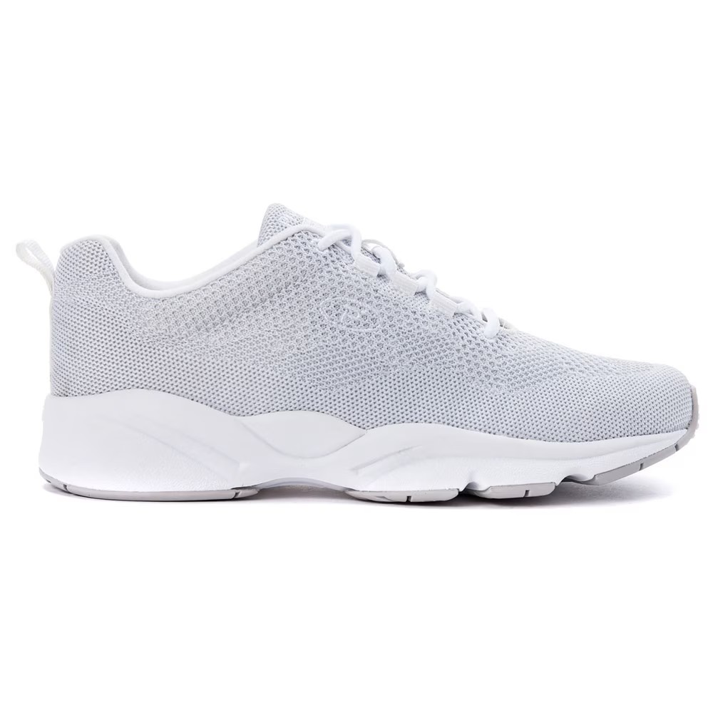 Найдите баланс в своей спортивной форме с женскими кроссовками Propet Stability Fly. Верх из дышащей сетки в стиле спортивных кроссовок для фитнеса с круглым носком Шнуровка для надежной посадки Мягкий воротник и язычок для дополнительной поддержки Мягкая тканевая подкладка с гелевой вставкой на пятке и съемной мягкой стелькой Пеноматериал для поддержки в течение всего дня Прочная резиновая подошва с цепким сцеплением