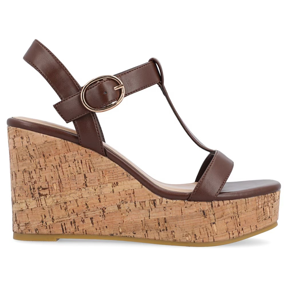 Отправляйтесь на работу, на вечеринку или на ужин стильно в женских босоножках на танкетке Matildaa из коллекции Journee. Верх из веганской кожи в стиле босоножек на танкетке с открытым квадратным носком Т-образный ремешок с регулируемой пряжкой на щиколотке Гладкая подкладка со стелькой Tru Comfort Foam толщиной 4 мм Промежуточная подошва на платформе Прочная искусственная подошва с танкеткой высотой 3,75 дюйма
