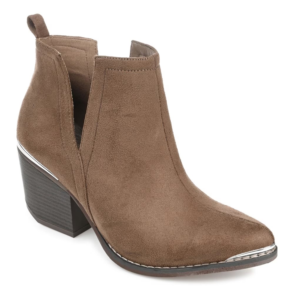 Ботильоны Issla сочетают в себе современный дизайн и практичность. Верх выполнен из качественной веганской замши, имитирующей натуральную кожу, с заостренным носком и характерным V-образным вырезом, подчеркивающим женственность силуэта. Металлическая деталь на носке добавляет акцент и защищает от износа.