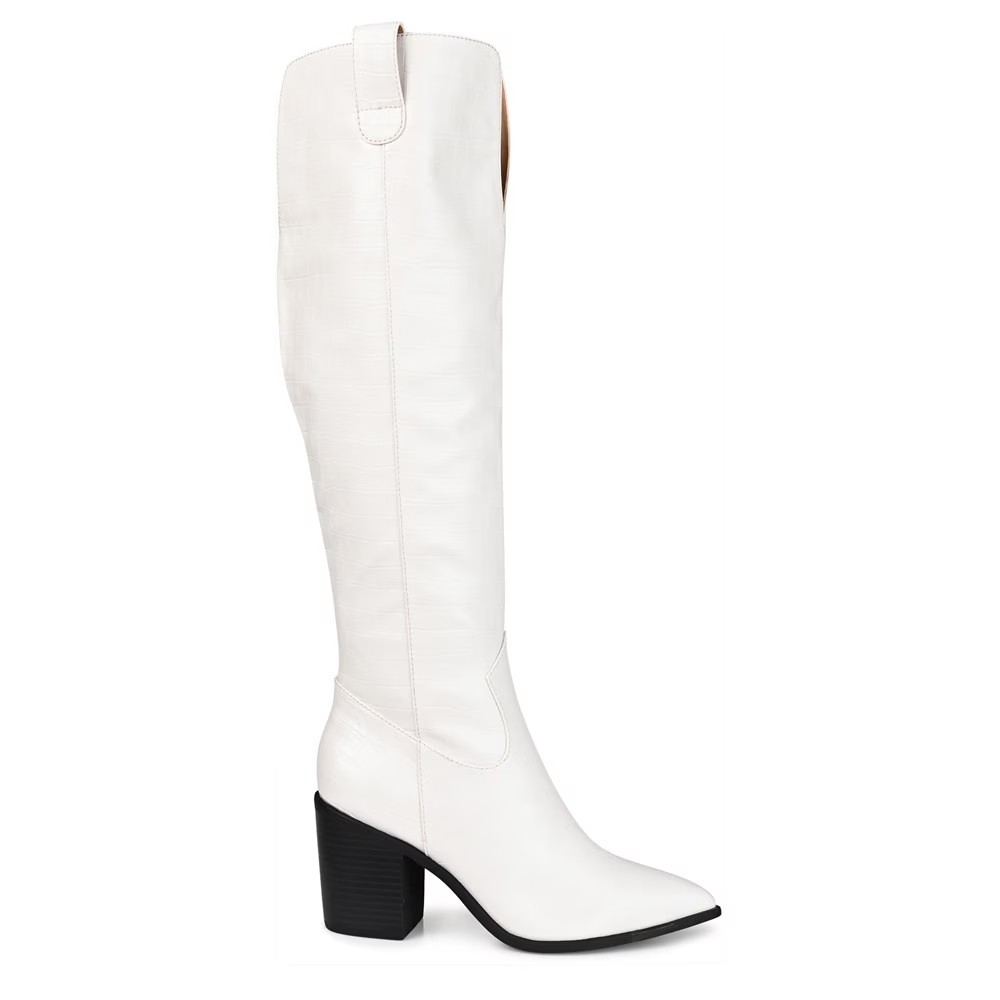 Вы любитель города или деревни? Ощутите и то, и другое с женскими ботинками Therese Block Heel Tall Boot из коллекции Journee. Верх из веганской кожи в стиле ковбойских сапог с острым носком Частичный вход на молнии сбоку Гладкая подкладка со стелькой Tru Comfort Foam толщиной 4 мм Высота голенища 16,5 дюймов и окружность 14,5 дюймов Прочный искусственный материал с блочным каблуком 3 и 1/4 дюйма