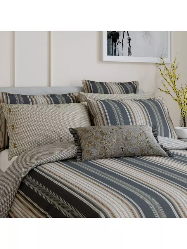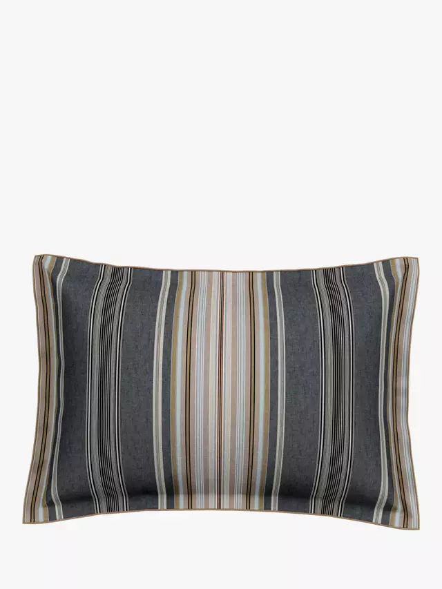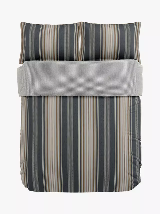 Oscar представляет смелый полосатый дизайн в насыщенных угольных и коричневых тонах из хлопкового перкаля плотностью 180 нитей. На обратной стороне постельного белья изображен мелкий геометрический рисунок. В один комплект входит 1 наволочка Oxford. Все остальные комплекты содержат 2 наволочки Oxford.