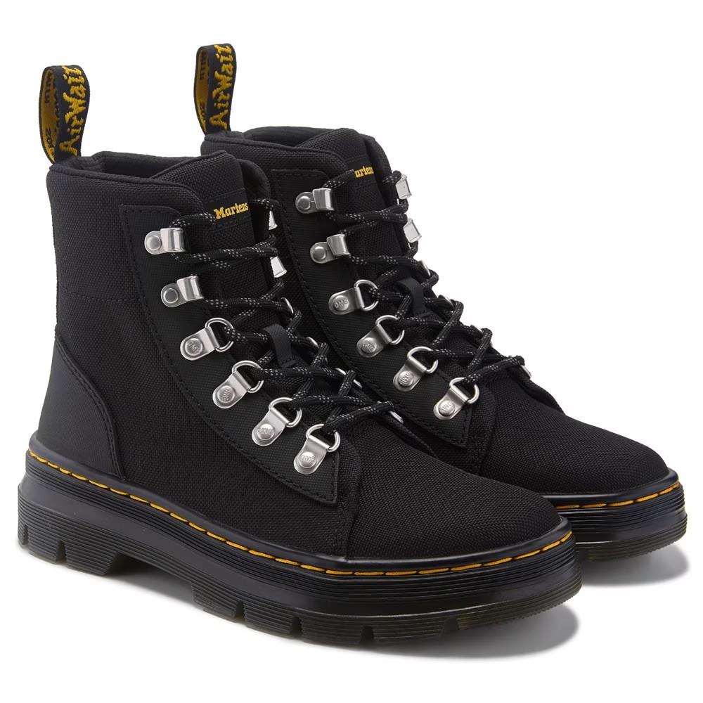 Создайте стильный образ в женских армейских ботинках Dr. Martens Combs Lace Up Combat Boot. Верх из легкого полиэстера и кожи Ajax в стиле ботинок на шнуровке с круглым носком Шнуровка с D-образными шнурками Сверхпрочный нейлон обеспечивает прочность и эластичность Петля на пятке Мягкий воротник и язычок для повышенного комфорта Мягкая подкладка с мягкой стелькой Прочная рифленая подошва