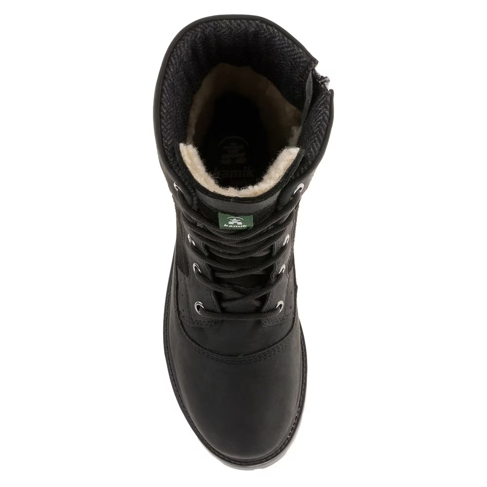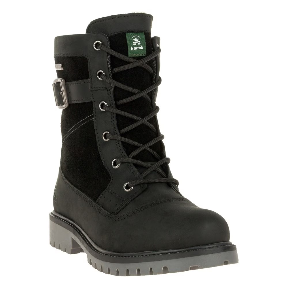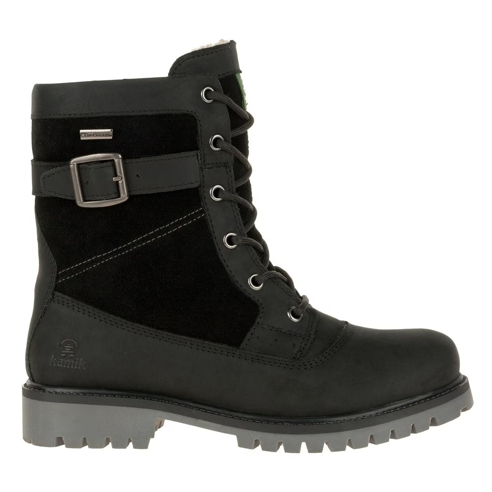 Женские водонепроницаемые зимние ботинки Kamik Rogue Mid Верх из натуральной кожи с герметичными швами, шнурованный зимние ботинки с круглым носком Без застежки-молнии внутри Шнуровка с металлическими люверсами Регулируемый ремешок с пряжкой Мягкая подкладка с мягкой стелькой Подошва из натурального каучука ASPEN с глубокими выступами для превосходного сцепления Высота ботинка 8 дюймов