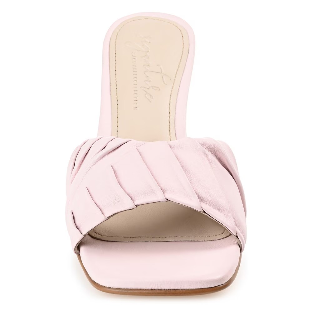 Женские сандалии Journee Signature Juliette Dress Sandal можно носить как нарядно, так и по-простому, чтобы придать изюминку любому наряду. Верх из натуральной кожи в стиле мюлей с открытым носком и квадратным носком Без застежек Плиссированные детали на носке добавляют текстуру дизайну Стелька Tru Comfort Foam толщиной 4 мм Каблук высотой 3 дюйма Прочная искусственная подошва