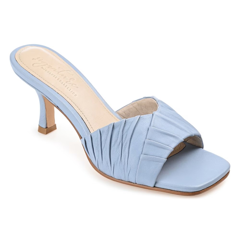 Женские сандалии Journee Signature Juliette Dress Sandal можно носить как нарядно, так и по-простому, чтобы придать изюминку любому наряду. Верх из натуральной кожи в стиле мюлей с открытым носком и квадратным носком Без застежек Плиссированные детали на носке добавляют текстуру дизайну Стелька Tru Comfort Foam толщиной 4 мм Каблук высотой 3 дюйма Прочная искусственная подошва