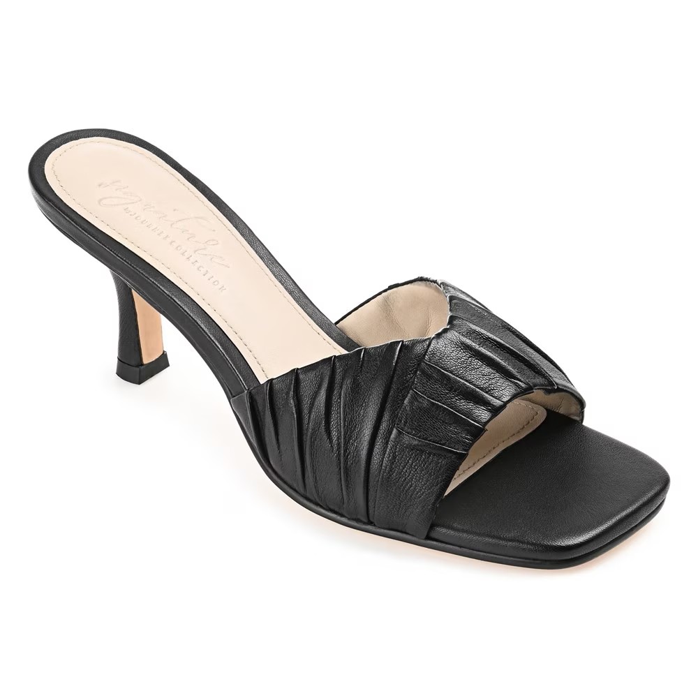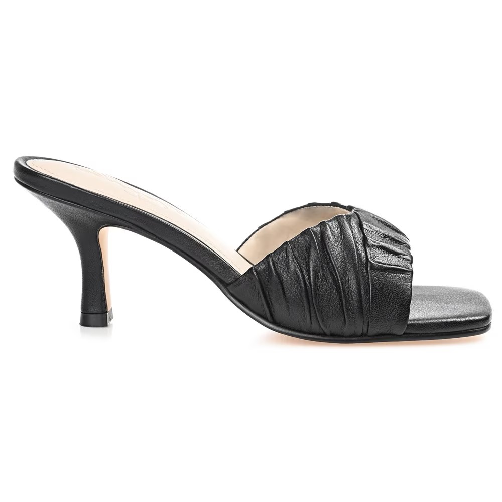 Женские сандалии Journee Signature Juliette Dress Sandal можно носить как нарядно, так и по-простому, чтобы придать изюминку любому наряду. Верх из натуральной кожи в стиле мюлей с открытым носком и квадратным носком Без застежек Плиссированные детали на носке добавляют текстуру дизайну Стелька Tru Comfort Foam толщиной 4 мм Каблук высотой 3 дюйма Прочная искусственная подошва