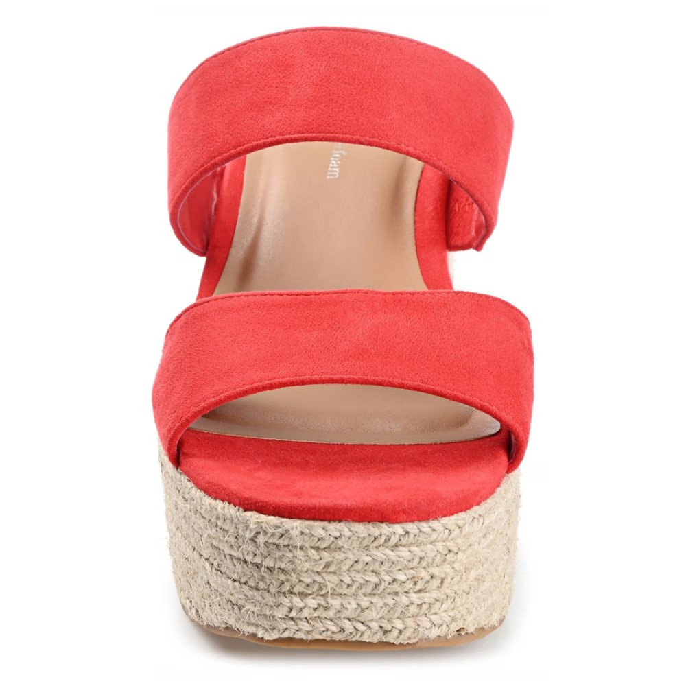 Похвастайтесь своими ножками этим летом в женских босоножках на танкетке Ilyana из коллекции Journee. Верх из искусственной кожи в стиле босоножек на платформе с открытым носком Без застежки на заднике Застежка с двумя ремешками Гладкая подкладка со стелькой Tru Comfort Foam толщиной 4 мм Подходит для веганов Прочная искусственная подошва с каблуком-танкеткой высотой 4 дюйма
