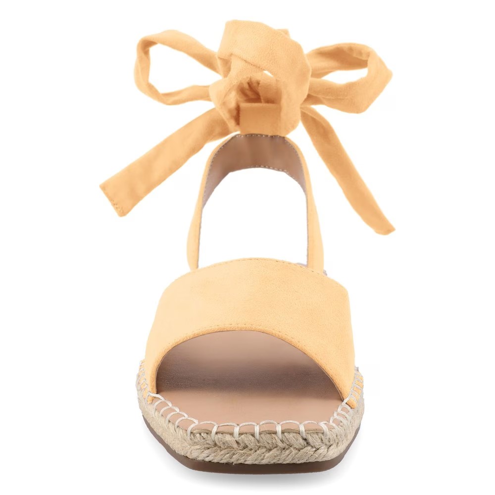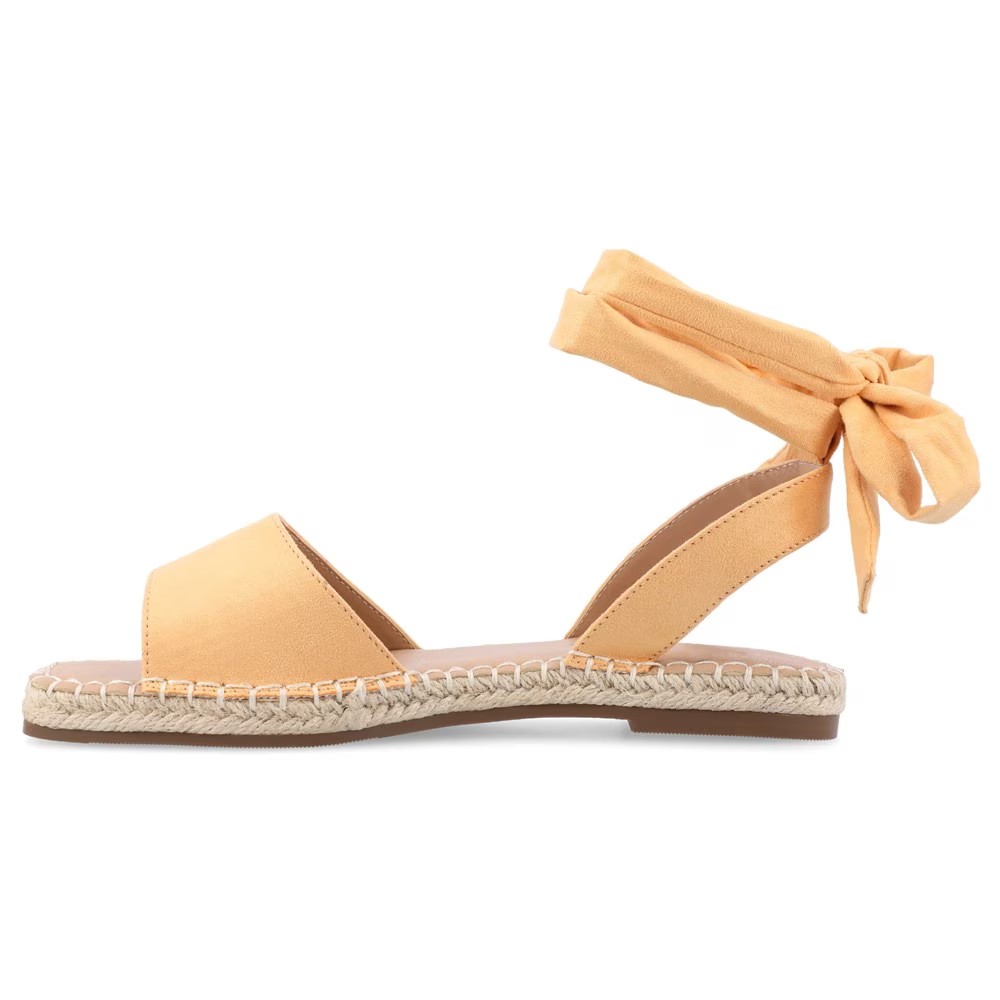 Широкие сандалии Emelie из женской коллекции Journee привносят совершенно новое значение слову «сандалии». Верх из веганской замши в плоском стиле сандалий с открытым носком. Завязка на щиколотке в стиле балеток. Гладкая подкладка со стелькой Tru Comfort Foam толщиной 4 мм. Отделка обметочным швом на стельке. Плетеные эспадрильи на подошве. Прочная искусственная подошва.